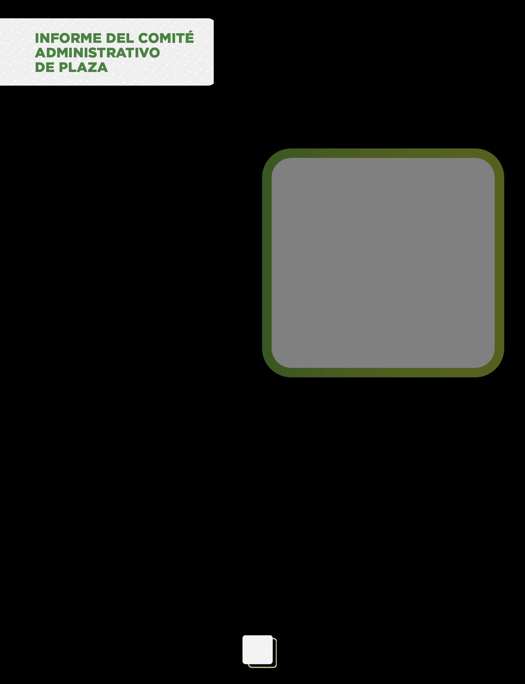 De acuerdo al Artículo 75 del Reglamento de integración y Funcionamiento de los Dirigentes, el Comité Administrativo de Plaza se integra por 11 directivos.