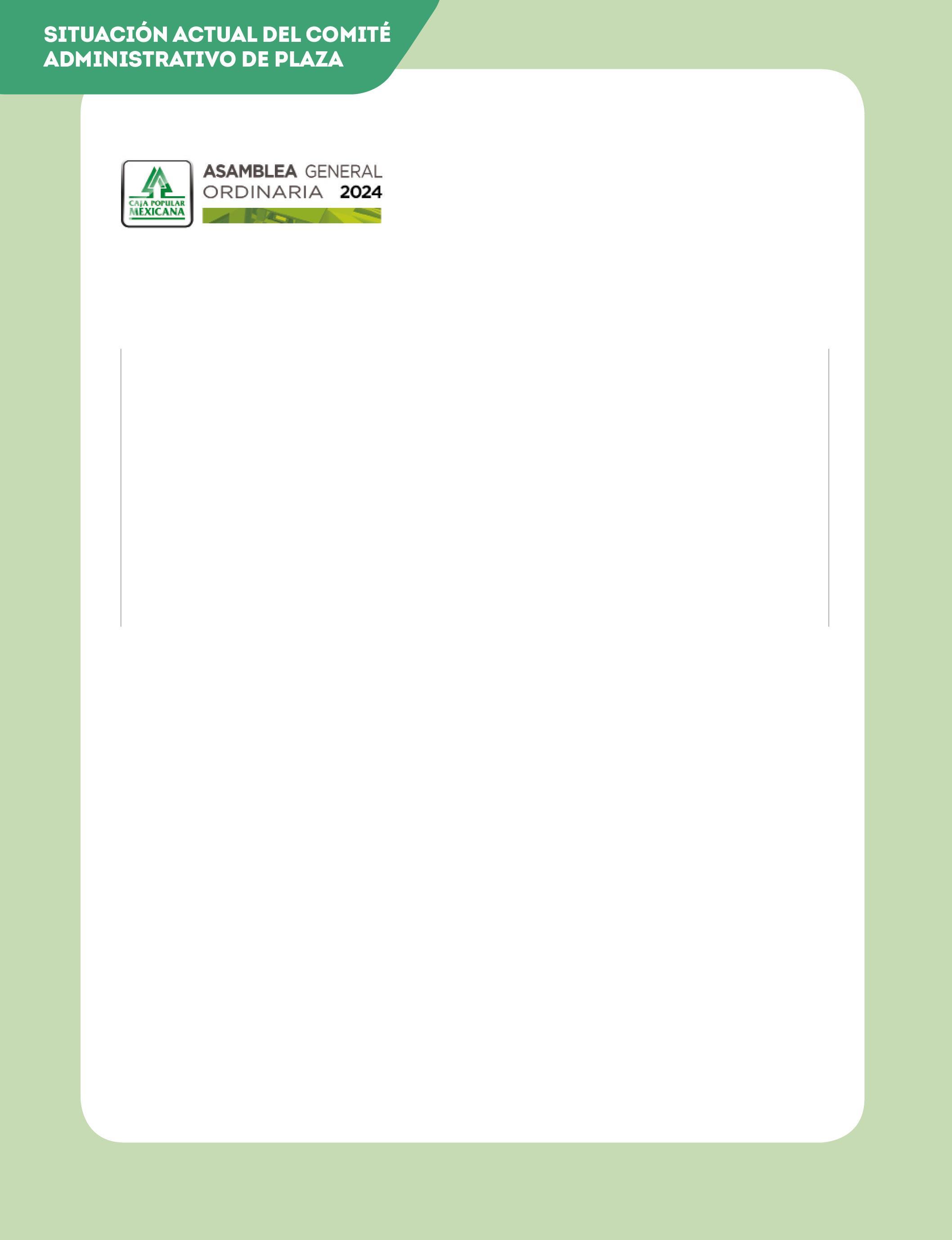 Caja Popular Mexicana les da la más cordial bienvenida a su asamblea de plaza. Mediante este proceso informativo y democrático, conocerán los resultados, beneficios, productos y apoyos que, como Sociedad Cooperativa, ponemos a su disposición como parte de nuestro objetivo para el logro del bienestar personal y familiar que permita mejorar la calidad de vida de cada uno de nuestros socios.