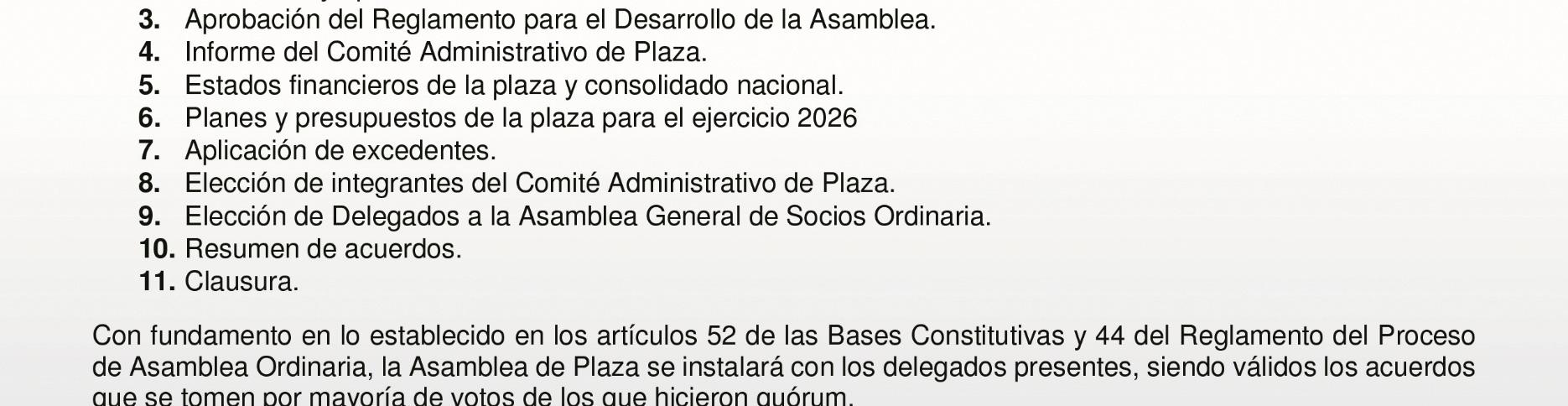 Tal como lo establecen las Bases Constitutivas de Caja Popular Mexicana, esta Asamblea tiene como propósito presentarles las actividades más relevantes, los estados financieros y los planes de desarrollo que se proyectaron y realizaron en el año 2025.