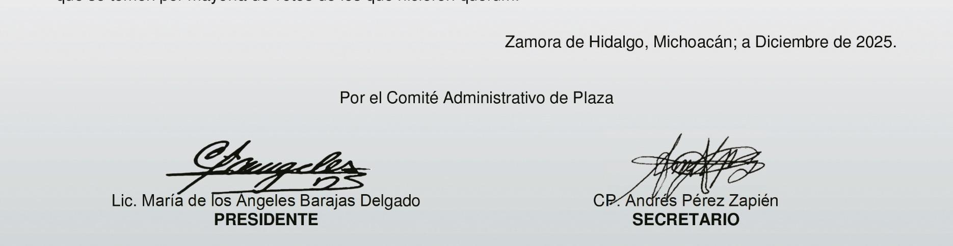2. El representante del Comité Administrativo de Plaza, integrantes del Comité Promotor de Sucursal y Gerente de Sucursal.