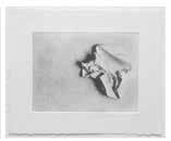 In fact, throughout Porter’s work, the objects as they normally are and as they’ve been decisively transformed and mediated coexist. It is for the viewer to constantly move between these two contexts, the one mundane and the other skewed, weird, at times humorous, and psychologically complex. At first glance Scratch, 1974, an etching and aquatint print, reveals a single nail puncturing a wall at an angle and the nail’s cast shadow; it is tough to imagine a more banal image than this. It takes time to discover a single (and actual, not printed) scratch starting from the point of puncture, angling across the paper, and also the surrounding mat; visible, tactile “damage,” such as could easily have been caused by the sharp nail, which also looks lustrous and even bejeweled. Presence and absence, agitation and repose, all converge while the nail, shadow, and scratch also loosely suggest a clock face, one of many references to time throughout Porter’s work. Key Ring, 2011, a photograph from Porter’s recent exhibition at Hosfelt Gallery in New York, is equally marvelous. A key ring (with attached key) sports a miniature plastic Jesus in a white frock with a red sash. This trinket Christ, this pocket or pocketbook Redeemer, dragging a burdensome key through an empty, white expanse, is altogether riveting. Porter’s photograph focuses attention on the absurdity of Jesus reduced to a massproduced practical gadget, but also makes this gadget seem oddly sacred, as well as deeply (and painfully) human. The key is a heavy burden, and almost as big as Jesus’s body, but also a great promise, as in “the keys of the kingdom of heaven” (Matthew 16:19). This image also resonates in our immediate lives as we move through the world, looking for loveliness, while encumbered by memories, worries, losses, and fear.