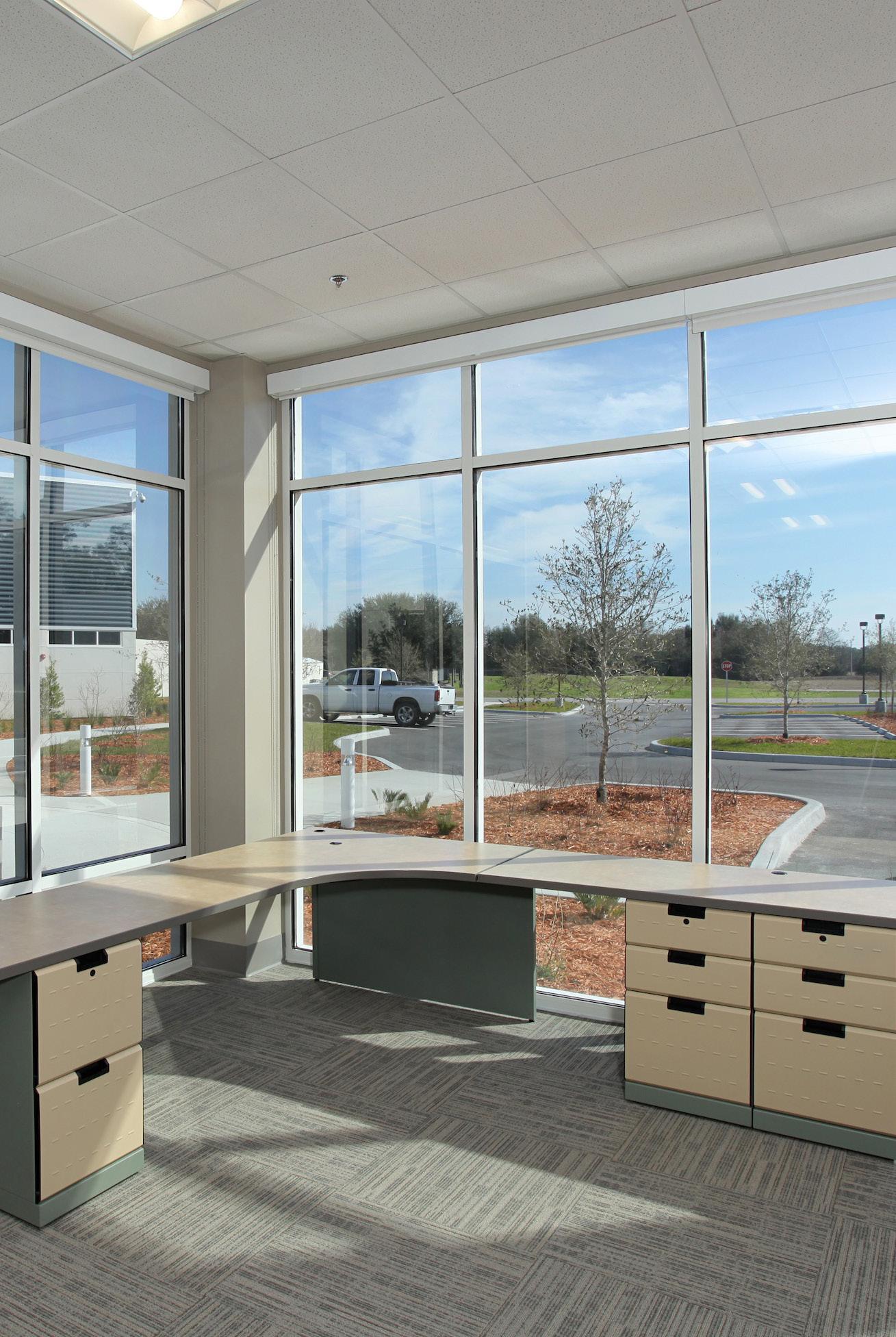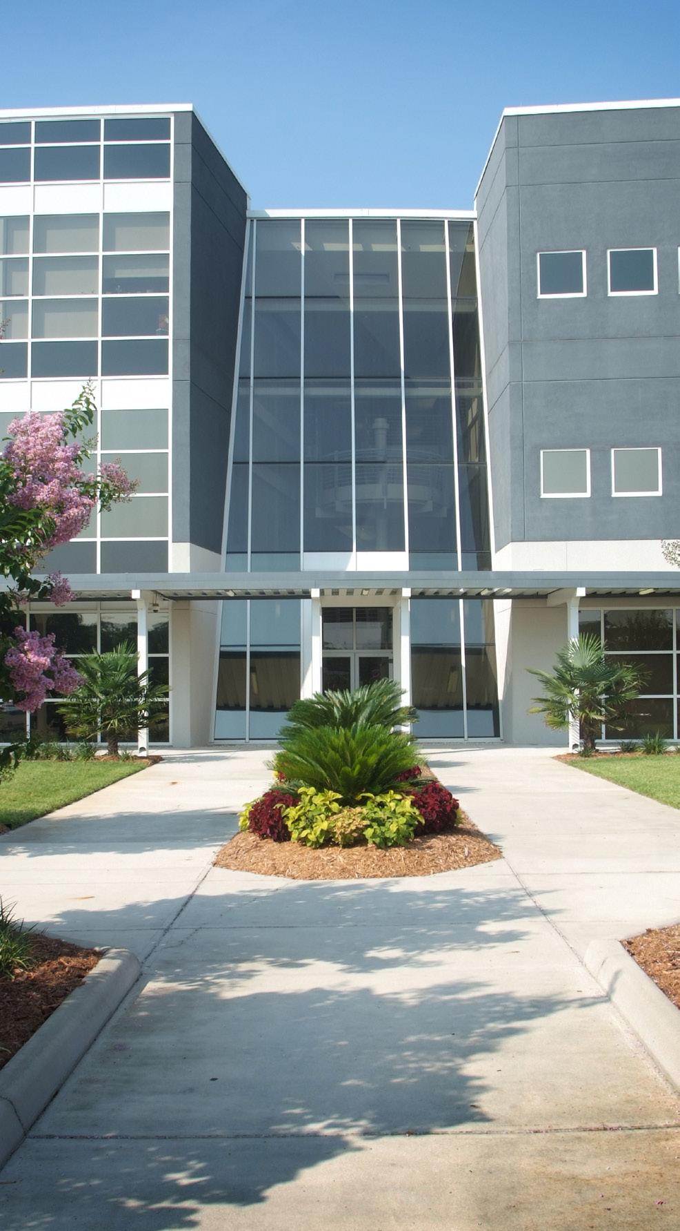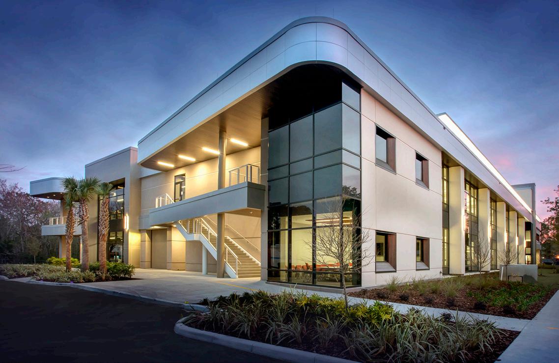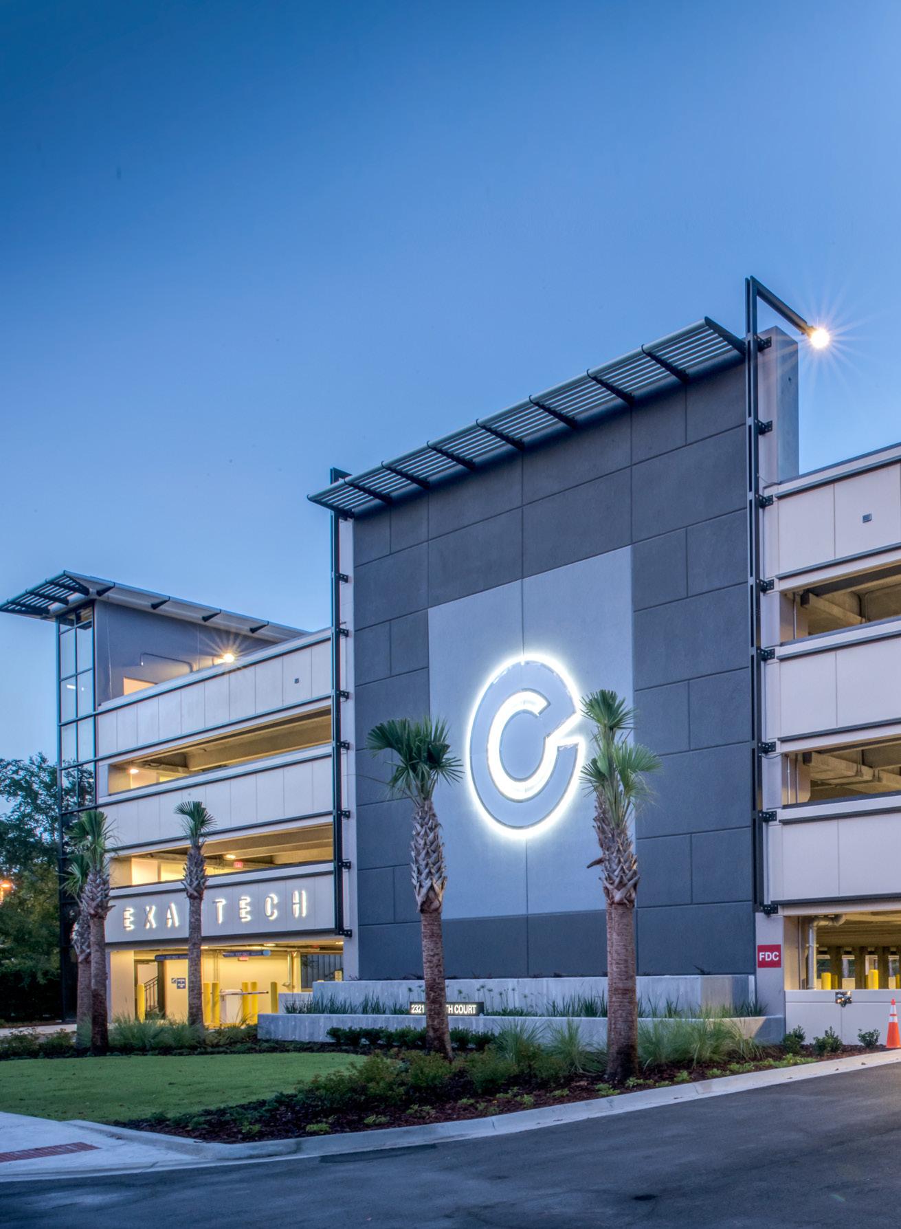 This project consisted of a multi-phased campus expansion that included a 66,756 manufacturing and office space addition, a complete interior renovation of the existing Exactech facility, and a new 592-space parking garage. The expansion consists of two stories of office and mixed-used space, as well as 15,500 SF of manufacturing space on the ground floor. The interior design centers around the hightech manufacturing space, a two-story space with a glass wall perimeter separating the space from meeting rooms, break areas, and circulation areas that are all able to view down into the space from the second level. The design intent is to use this as a show piece when visiting surgeons visit the facility to learn about Exactech’s advancements in their field and to witness the production of the product being manufactured. The remainder of the facility is a two-story open floor plan design which houses office and multi-use space to allow Exactech to expand and reconfigure as they grow.