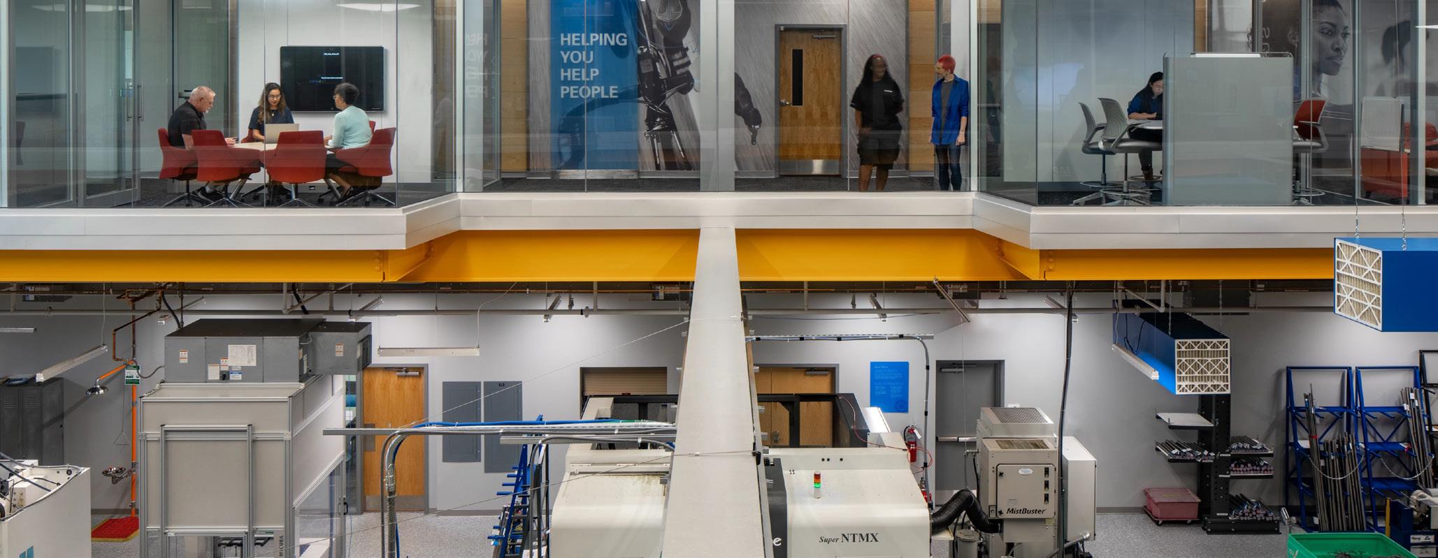 The 42,000 square foot Logistics and Technology Building accommodates research and development labs, clean rooms, warehouse, shipping and finished implants. The R&D laboratories include tissue and cell culture laboratories, histology and cell biology, chemistry laboratories, and test laboratories. Technical services labs include debride suites, process areas, machine shop and freezer and refrigerator storage areas. Warehouse area includes bulk goods storage, incoming donor tissue process and storage areas, and quarantine areas.