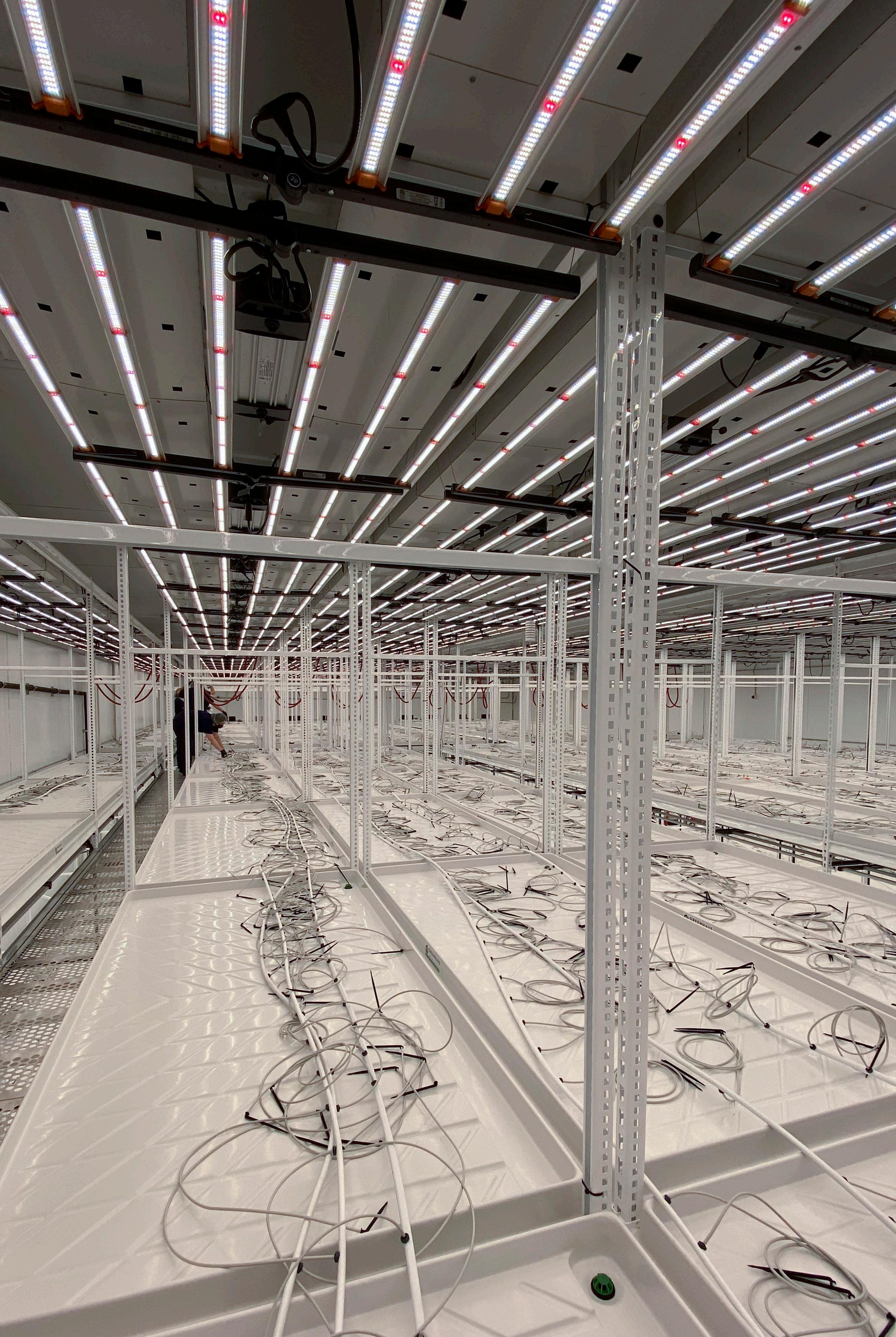CPPI recently completed a 12,000 SF indoor medical cannabis cultivation facility for Trulieve. The facility features 10,000 square feet of canopy space for mature plants in the Flower Room – accomplished by a Pipp Mobile Storage System, which consists of a three-tier moveable rack system that maximizes cultivation space. Each moveable rack includes cultivation lighting, fertigation plumbing, HVAC duct sock, and drainage. CPPI installed five air handler units, supplying a total of 82,600 cubic feet per minute to the cultivation rooms. The building also contains a Clone Room, a Veg/Mother Room, two Dry Rooms, a Trim/Cure Room, and Vault. It also contains ancillary spaces for staff.