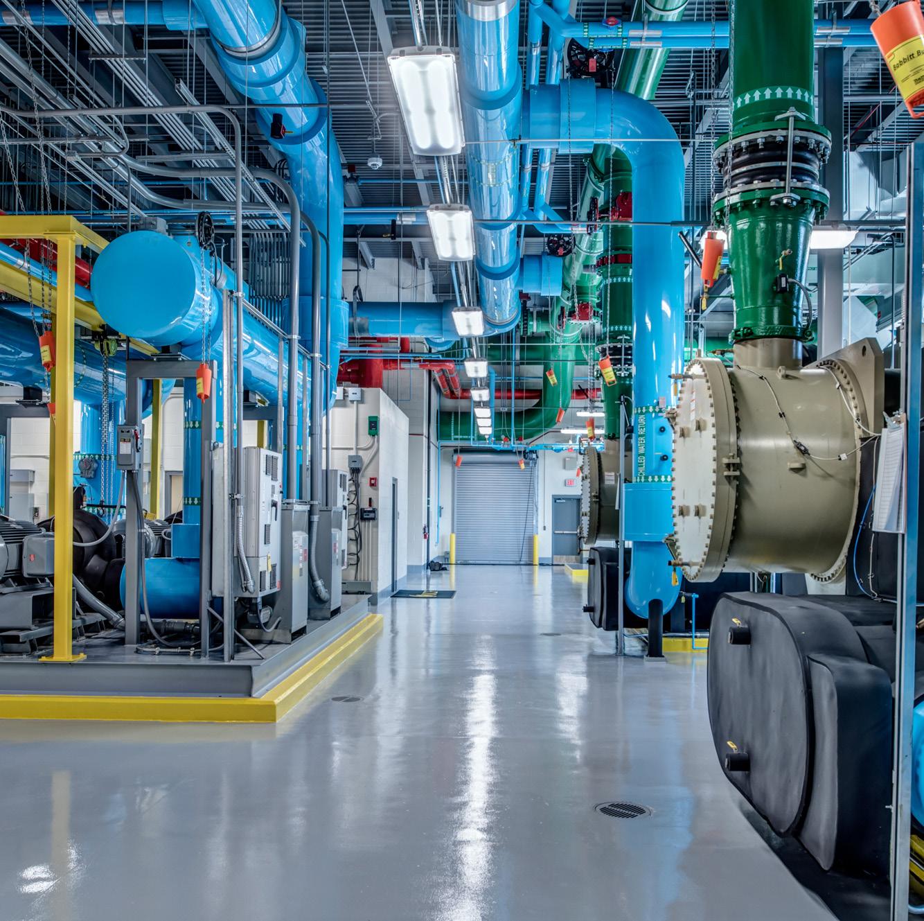 The District Energy Plant IV (DEP IV), UCF’s newest energy plant, is a symbol of the university’s dedication to energy efficiency and conservation. The plant is a 13,000 GSF chilled water complex with capacity for 8,000+ refrigeration tons. Its innovative technologies will create high quality indoor environments, reduce greenhouse gas emissions, and secure energy supply in the face of rising commercial energy costs. Its efficiency of .59 kW/ton is in support of the university’s pledge to be climate neutral by 2050.