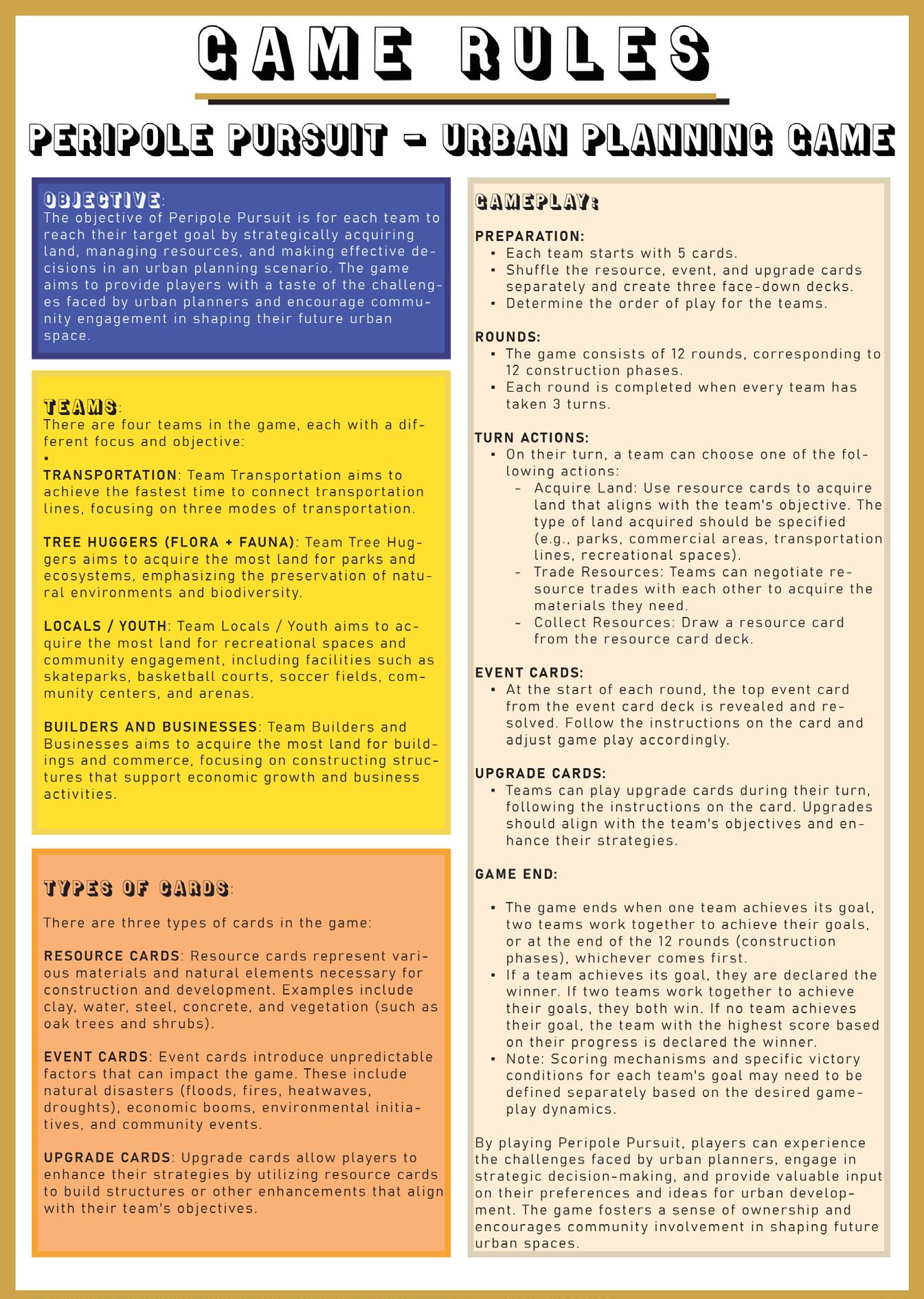 To engage the community in the design process, my team developed a board game inspired by Catan. The game served as an interactive tool to inform residents about the Val de Fontenay site while gathering their ideas and priorities for designing a portion of the park. Participants navigated site challenges and opportunities, such as addressing the highway’s division or integrating sustainable features, through game mechanics that reflected real-world constraints and possibilities. This playful yet educational approach fostered a collaborative and inclusive environment, ensuring the park design reflected the community’s vision and needs.