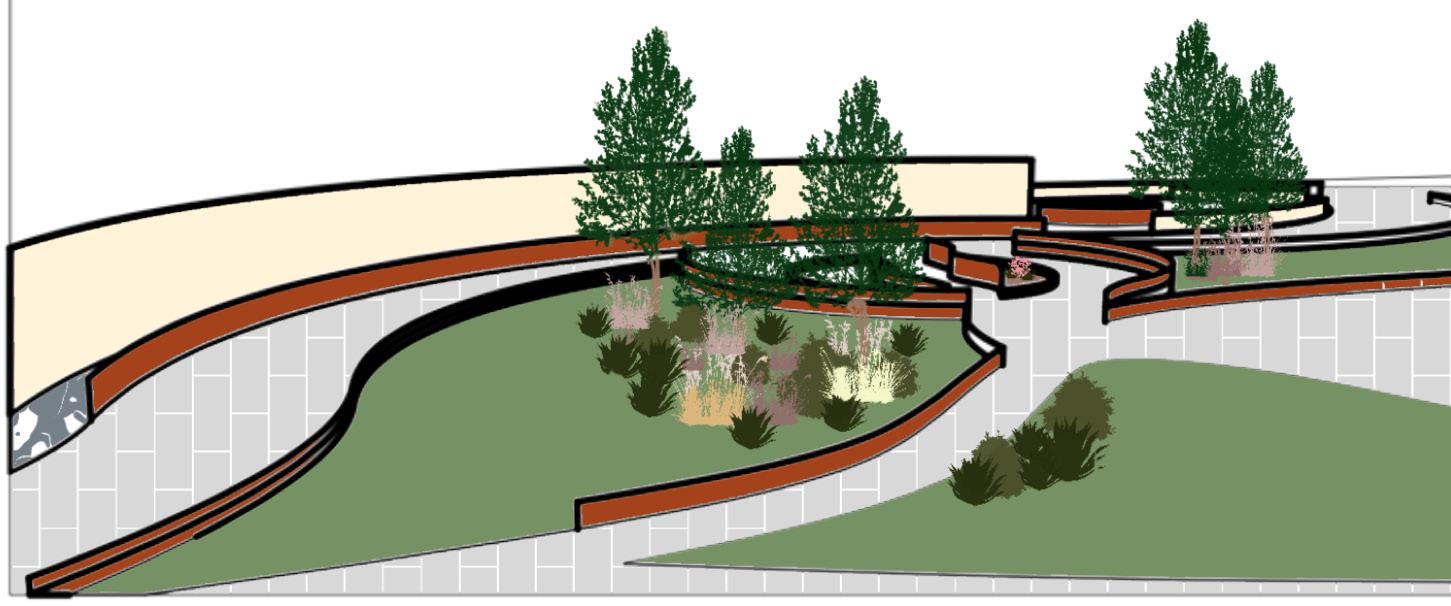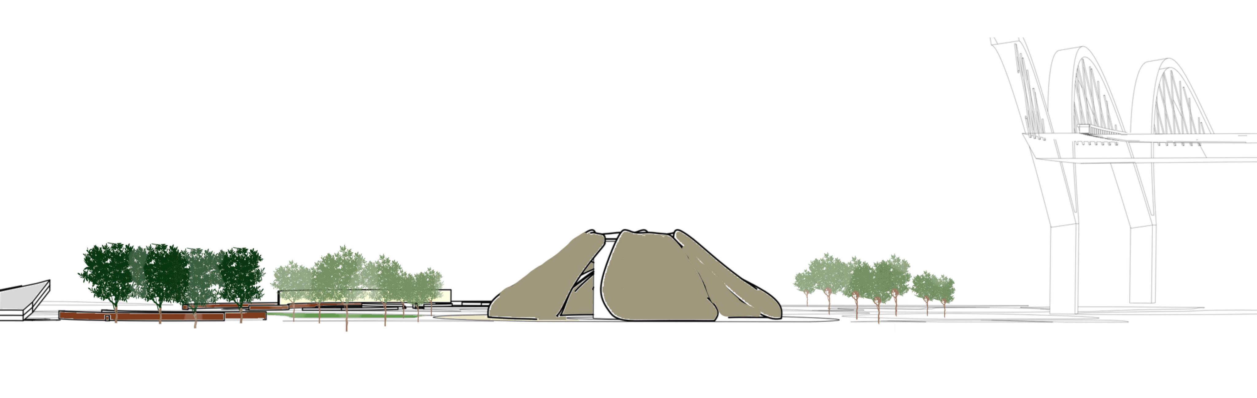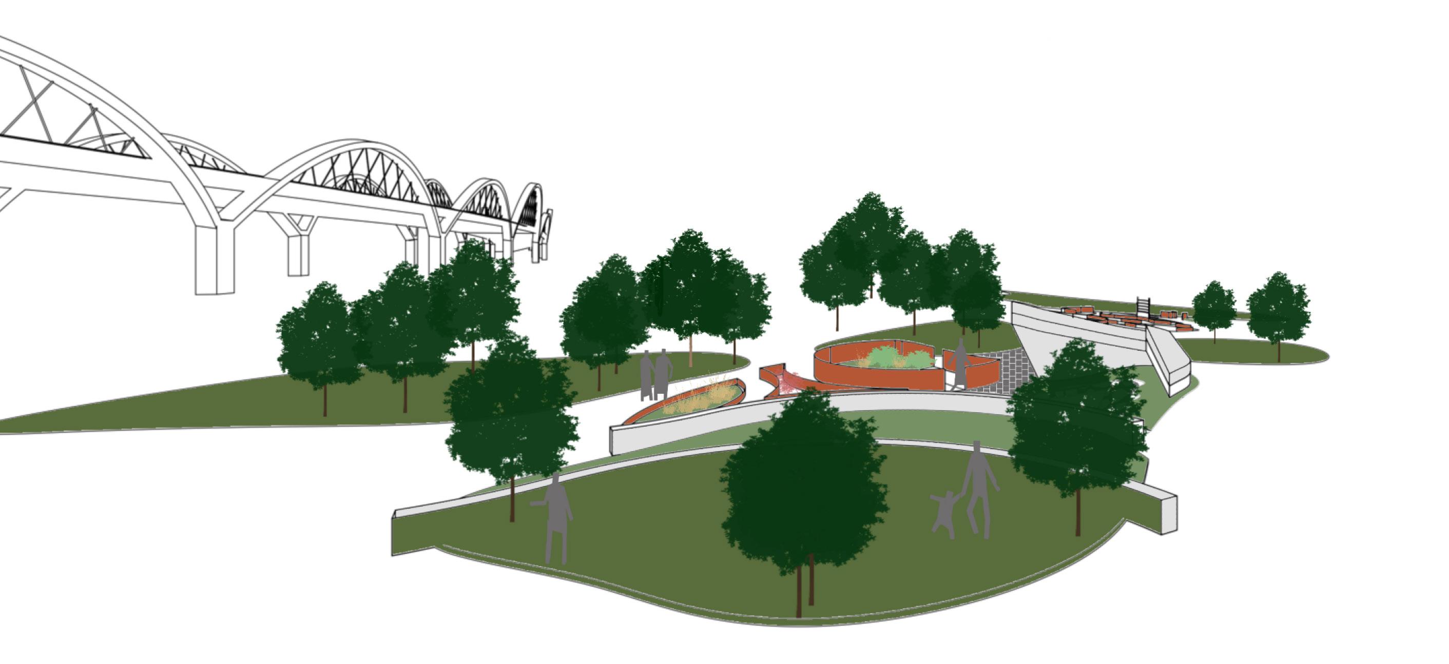 Art and spirituality was a way the Boyle Heights stayed resilidentity, with murals, gathering spaces, and native landscapes fostering connection and expression. Like the LA River flowing nearby, the park embodies resilience, serving as a place for unity and renewal. I was responsible for designing the entrance to the site, crafting a welcoming gateway that sets