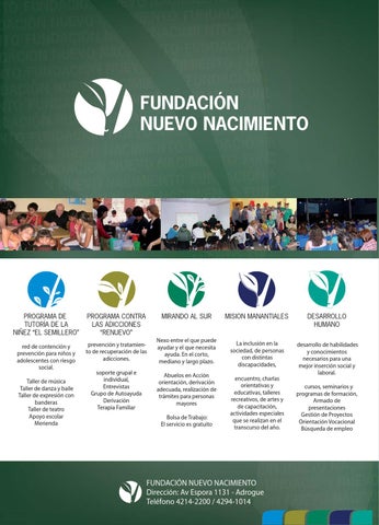 FUNDACIÓN NUEVO NACIMIENTO Dirección: Av Espora 1131 - Adrogue Teléfono 4214-2200 / 4294-1014