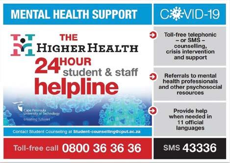 • CPUT101 Programme available on Blackboard offers various topics to assist first-year students to adapt, and engage with their academics; and