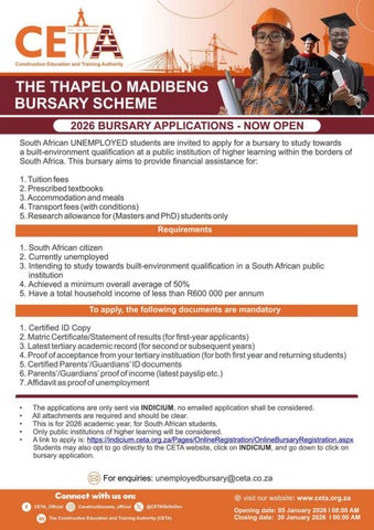 • The School Liaison Unit supplied brochures for outreach to the Youth Development Department at George Municipality, thereby giving disadvantaged learners in rural areas access to information.