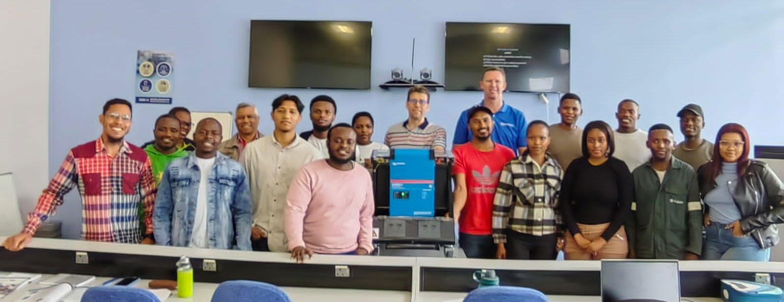 2023 Intake of the WIL students and Energy Storage Graduate Candidates getting Training on Victron Systems Installation provided by the External Trainer, Mr Andre du Rand from Victron Energy.