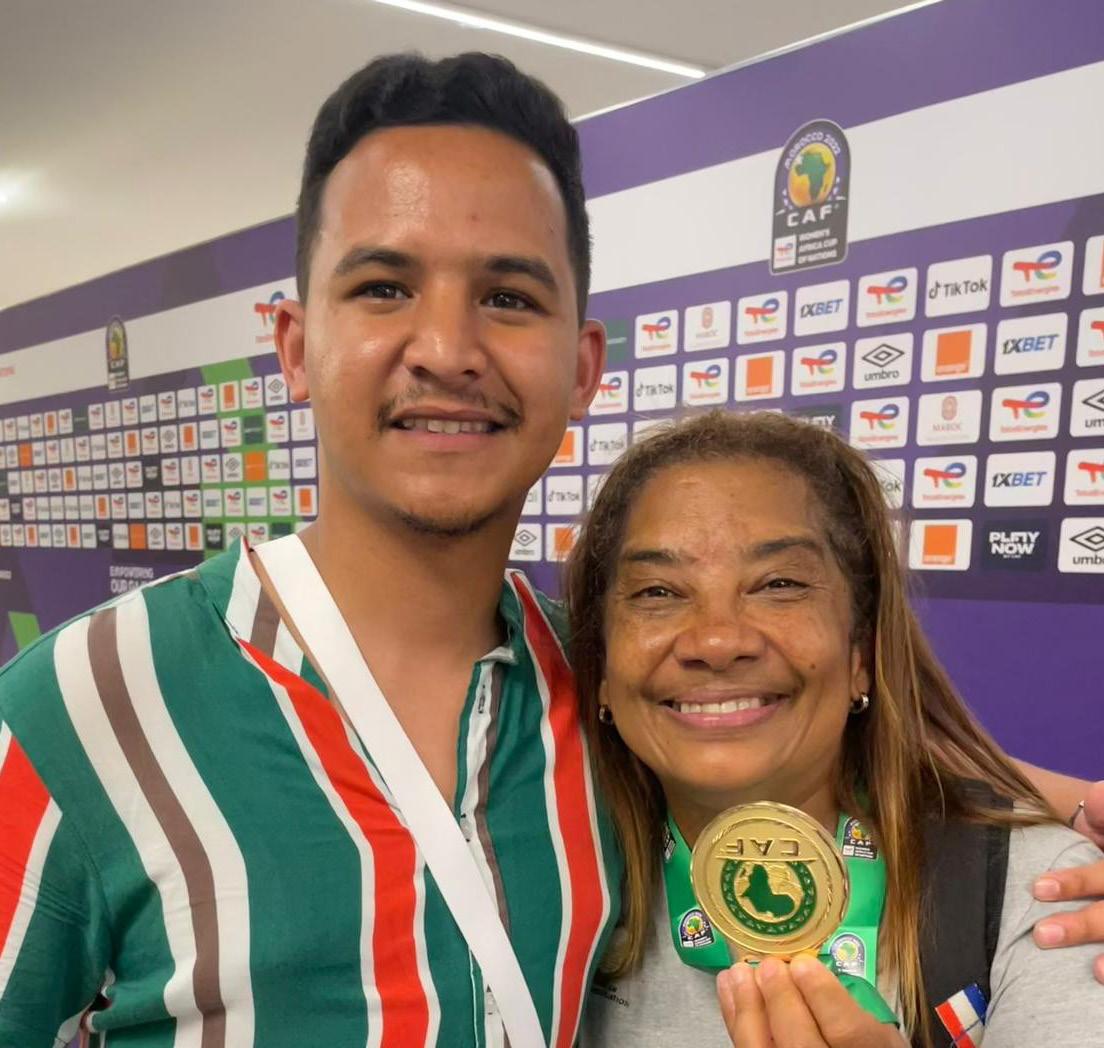 ALUMNUS MAKING WAVES: Former CPUT journalism student and sports reporter Lorenz Köhler shares a moment with Banyana Banyana coach Dr Desiree Ellis.