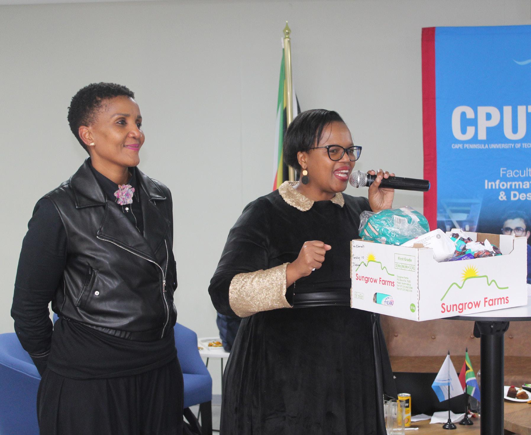 DIGNITY: Fashion and Design lecturer and FID Language and Transformation Coordinator, Sindiswa Papa, together with Bongie Kolisi, head of the Fashion Programme, launched the faculty’s sanitary towel initiative. Picture: Jim Mohlala.