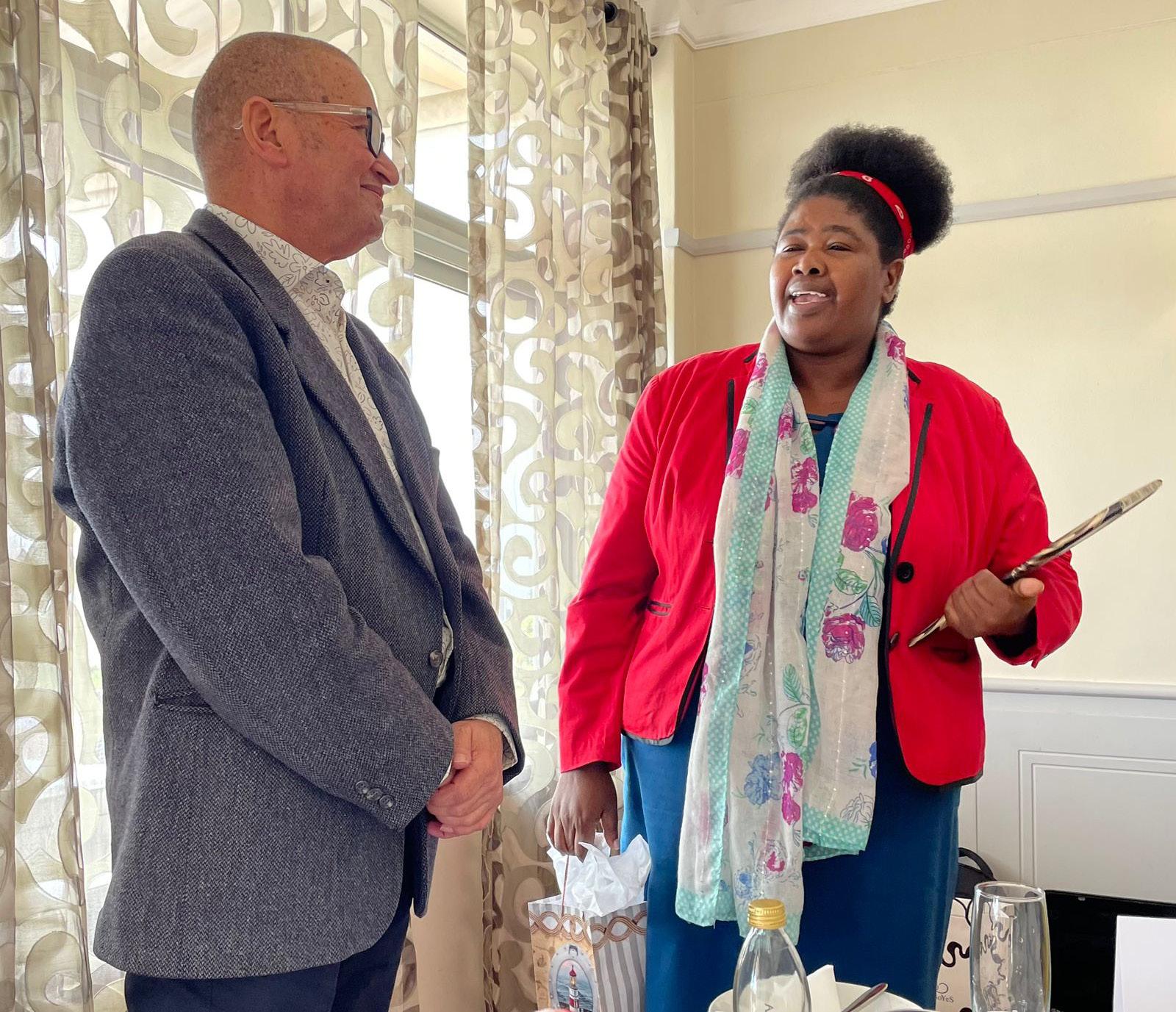 A FOND FAREWELL: Faculty of Informatics and Design's Professor Tembisa Ngqondi bids Assistant Dean, Professor Bennett Alexander, farewell following his recent retirement after a 40-year career. Picture: Supplied.
