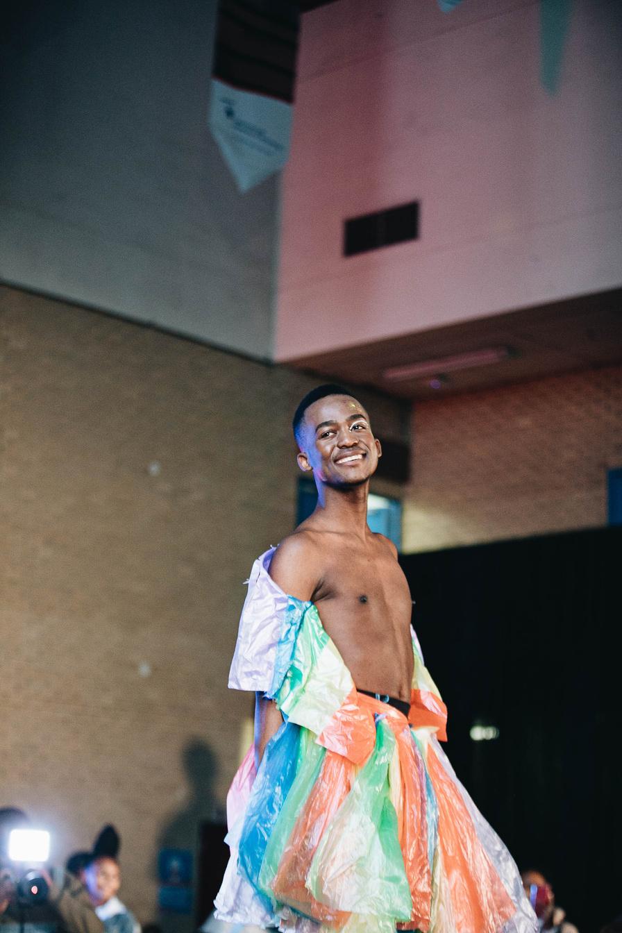 The theme for the 2022 GCI Fashion Show was #CPUTGreenLifstyle, aiming to showcase the opportunities for students within the Green Economy as well as to show our students how recycled materials can be used to make exquisite garments