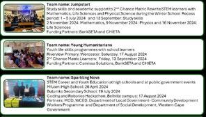 1st place – Ms Nomalizo Mapasa 2nd place – Mr David Haarhoff 3rd place – Mr Isaac Paul 4th place – Mr Selema Molopa and Mr Tumiso Mfisa