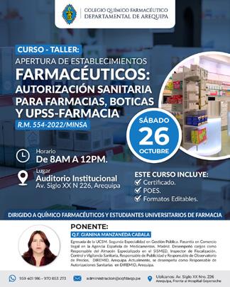 Q.F. Giovanna Loyola Quiroz Lazo Decana del Colegio Químico Farmacéutico Departamental de Arequipa