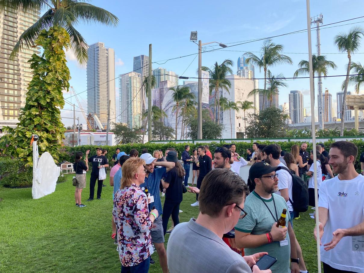 ArtBlocksheldanafternoongardenpartyattheNewArtDealersAlliance in Miami on Dec. 3 to celebrate the Squiggle. The event was hosted by SquiggleDAO, the Venus Over Manhattan platform, and Art Blocks founderErickCalderon.