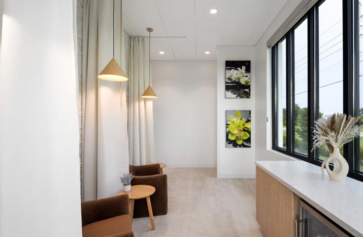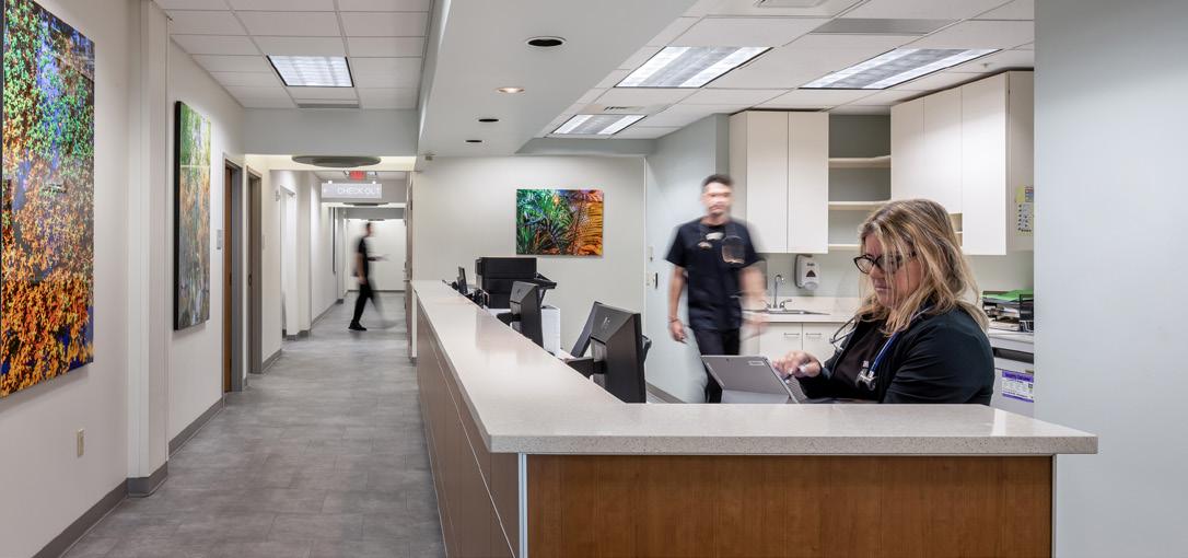 Patient wayfinding was simplified by creating a separate and distinct ASC entry, reception, and a dedicated waiting area that is accessible from within the existing clinic. A new covered pick-up area allows patients to return home without traveling through the reception area after their procedure.