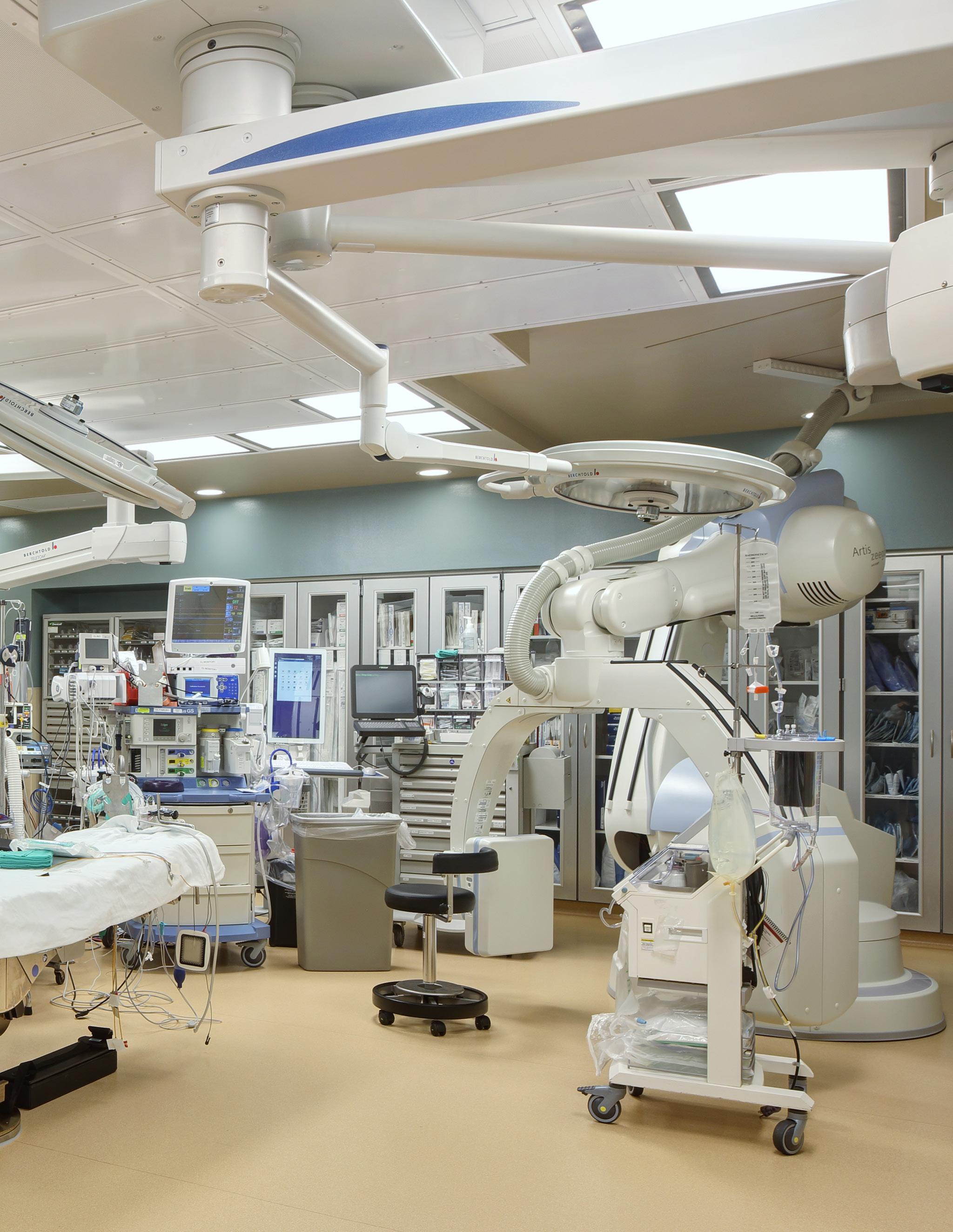 To facilitate best continued operations, a rigorous effort was provided to coordinate the construction sequence to minimize shut down of services. PRA worked closely with the medical equipment vendor as well as the engineering and construction teams to design the requirements of the interstitial spaces to minimize conflicts with existing structure, utilities and new equipment. Equipment and interior finishes were upgraded to new set standards for branding this suite for the ASC building addition.