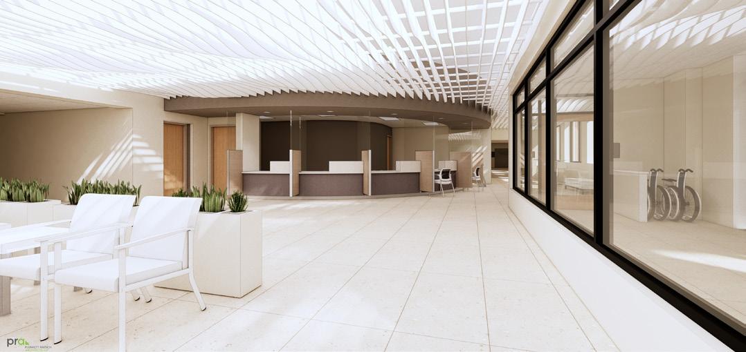 In 2019, longstanding client Fort Healthcare engaged the PRA team to assist in consolidating various services in satellite clinics to underutilized space within the oldest portions of the existing Fort Memorial Hospital. These include internal medicine, pediatrics, ENT / audiology, and behavioral health, along with various non-clinical departments. A new occupancy separation was added to allow these spaces to be designed for less stringent code requirements. Food services and dining were relocated to be adjacent to ambulatory services entrance to give it greater prominence as a gathering space for patients, their families, staff, and the community at large. This planning work resulted in a multiphase renovation project, with construction scheduled for completion at the end of 2025.As part of the renovations, the building exterior will be reclad with brick, metal panels, and storefront glazing to replace the deteriorating and under insulated enclosure, providing a well-sealed and energy efficient envelope, and modernizing this portion of the hospital to complement more recent additions.