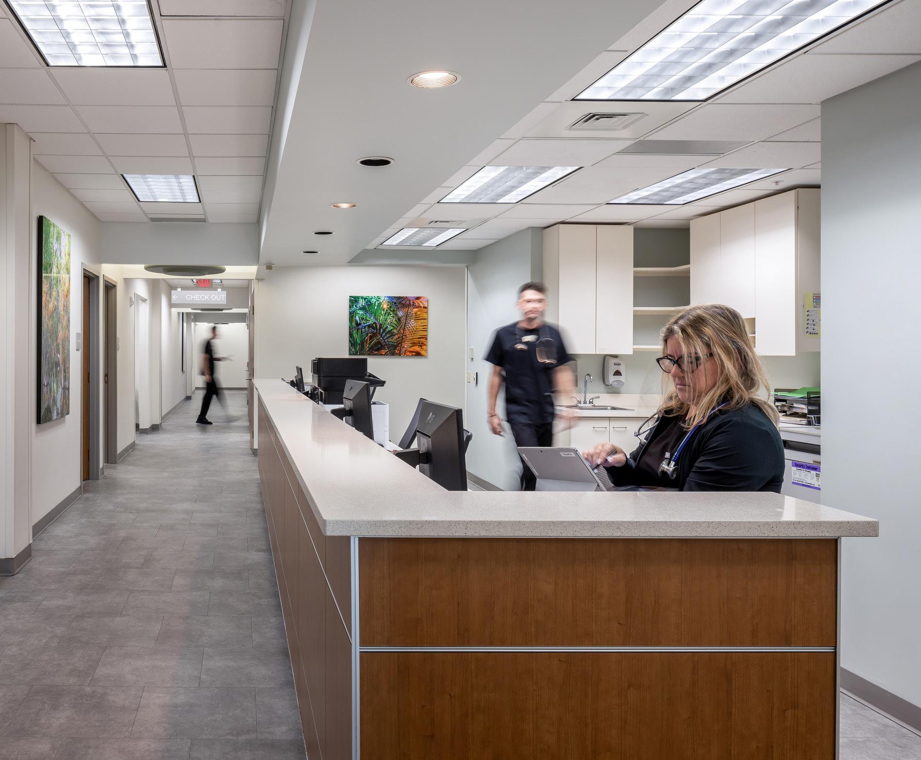 Interior Design is not a separate process at PRA: Our professionals are holistically integrated into our design process to produce cost-effective, beautiful, and functional spaces. They help to translate client goals into human-centered spaces that can ease anxiety, reinforce organizational culture, and communicate branding.