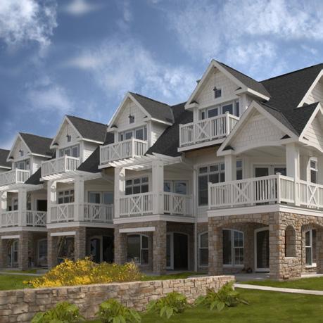 This multi-unit townhome complex in Door County, WI, was thoughtfully designed to blend seamlessly with its natural surroundings, offering residents a relaxing and comfortable living environment. The spacious, open floor plans provide stunning water view.