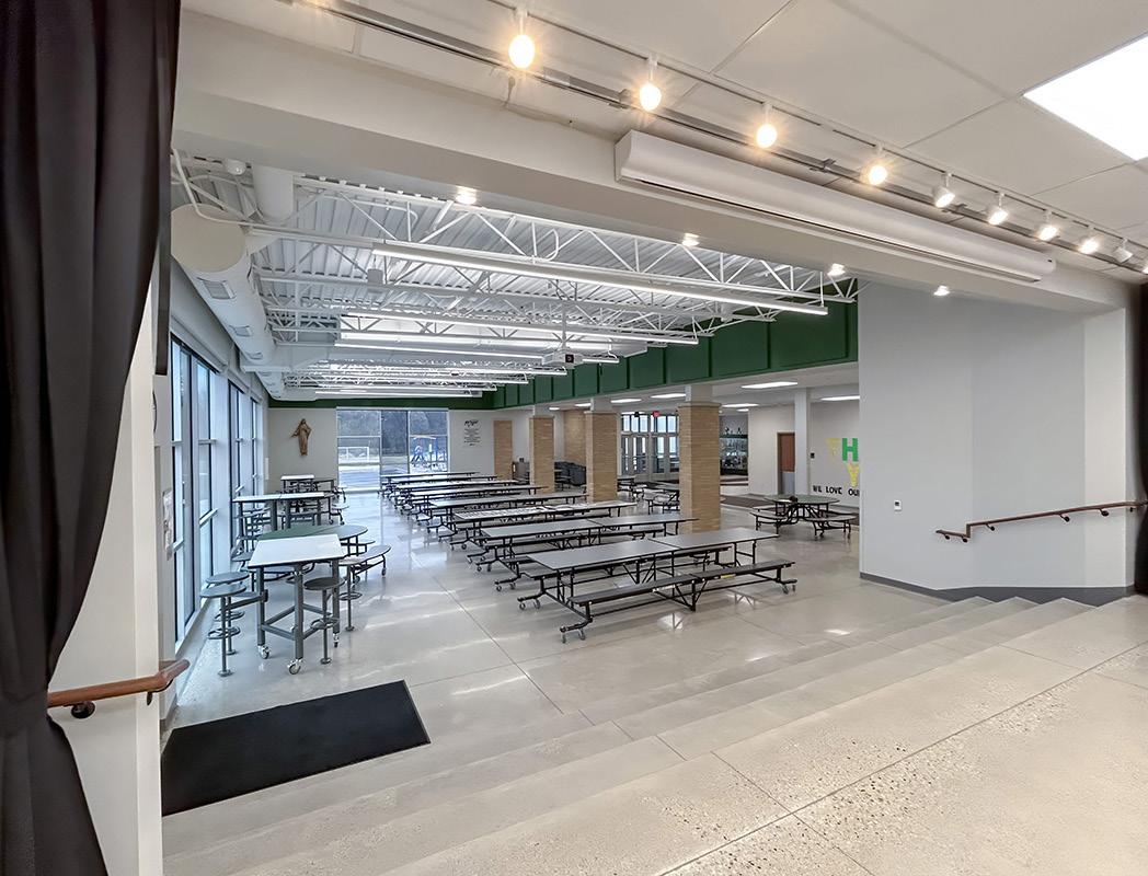 The Education Center houses K4 through 8th grade students, with one classroom for each grade. Some of the highlights of the addition include a flexible art, health and Spanish classroom that can be utilized by all grades, and a STEM lab. A spacious commercial kitchen was also built to allow for meal preparation. To conserve space, and its associated construction costs, the school library was repurposed into multiple collaboration areas with a variety of seating options for the students. The collaboration areas were designed to overlook their own courtyard space to encourage engagement with nature, as well as bring natural light. A secure school entrance and new offices for the school administrative personnel were also part of the addition.