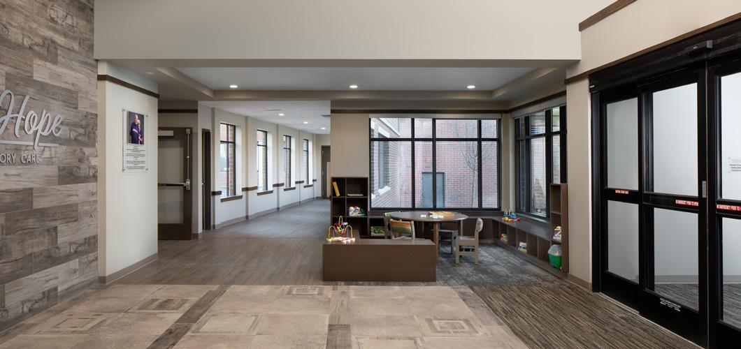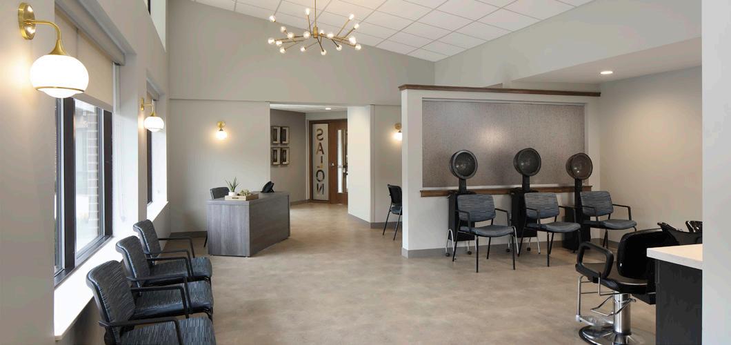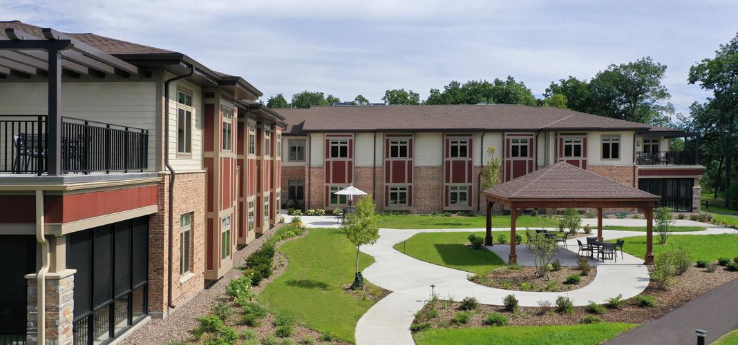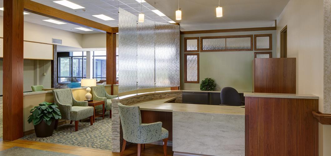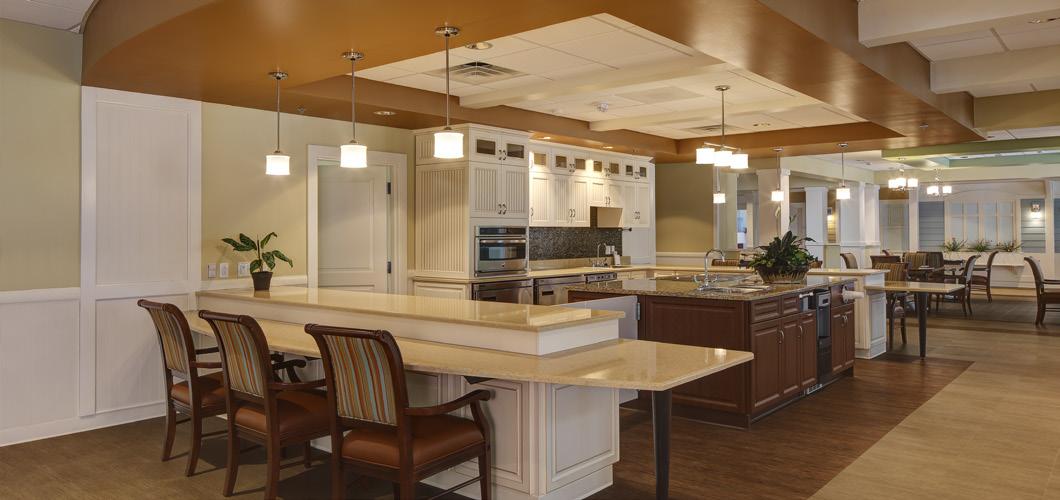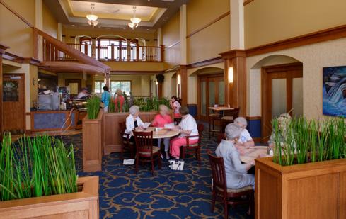 To serve their residents better and offer more to the community, Three Pillars Senior Living Communities expanded their rehabilitation and wellness center areas. The 13,500 sq. ft. rehabilitation expansion provides 14 private suites for in-patient, shortterm rehabilitation care and a 1,900 sq. ft. therapy gym. This expansion allowed 14 existing semi-private rooms to be converted to 14 private rooms for traditional skilled resident. The 4,980 sq. ft. wellness center expansion features a fitness center, aerobics and dance studio, Wi-Fi social lounge , coffee and juice bar and a full-function demonstration kitchen for hands-on educational opportunities in nutritional wellness.