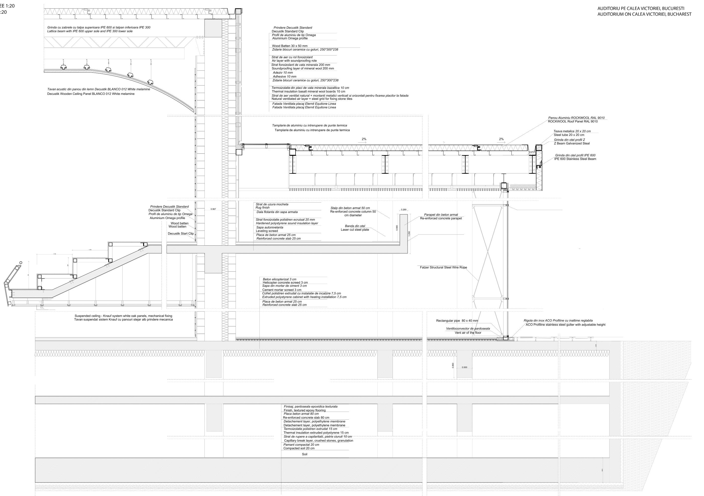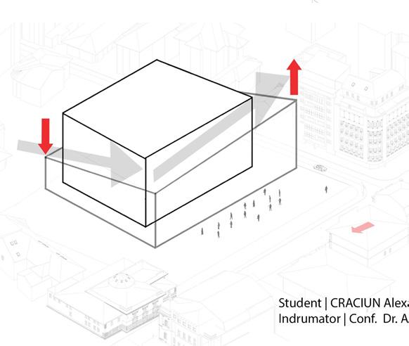 The proposed project in the center of Bucharest is an auditorium surrounded by a flexible space dedicated to the arts. The design of the auditorium is carefully crafted to cater to a variety of auditive activities, including music, theater, and meetings. The auditorium features an inclination that takes into account the varying heights of the surrounding buildings, providing an optimal experience for its users. The subplants of the auditorium are shaped in a curve and offer multiple levels, allowing for easy circulation throughout the building. The back facade of the auditorium is designed with a degree of inclination and small openings of varying sizes, which not only provide protection from direct sunlight but also create an aesthetically pleasing facade. The inclined facade also serves to avoid direct sunlight on the art displayed on the outer walls of the auditorium, while still allowing ample light to enter the inner space. In conclusion, the proposed auditorium project in Bucharest offers a unique and innovative design, thoughtfully crafted to cater to the diverse needs of the community. Its flexible art space, versatile auditorium shape, and carefully considered circulation and lighting elements make it an attractive cultural hub that is well suited to the city’s needs.