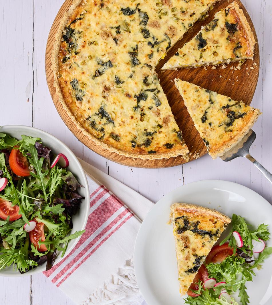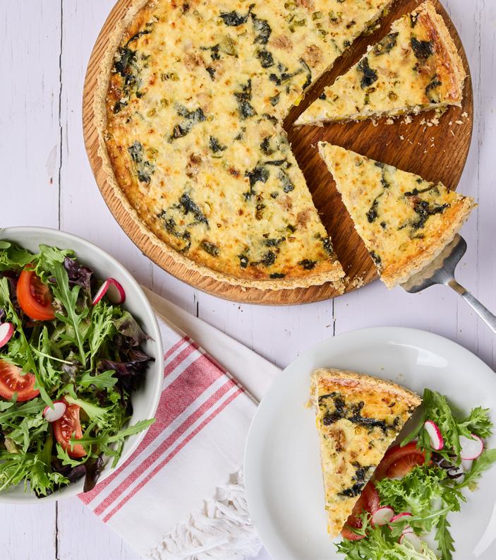 9. Mix the salad ingredients together and serve with the quiche. The quiche is delicious warm or cold.