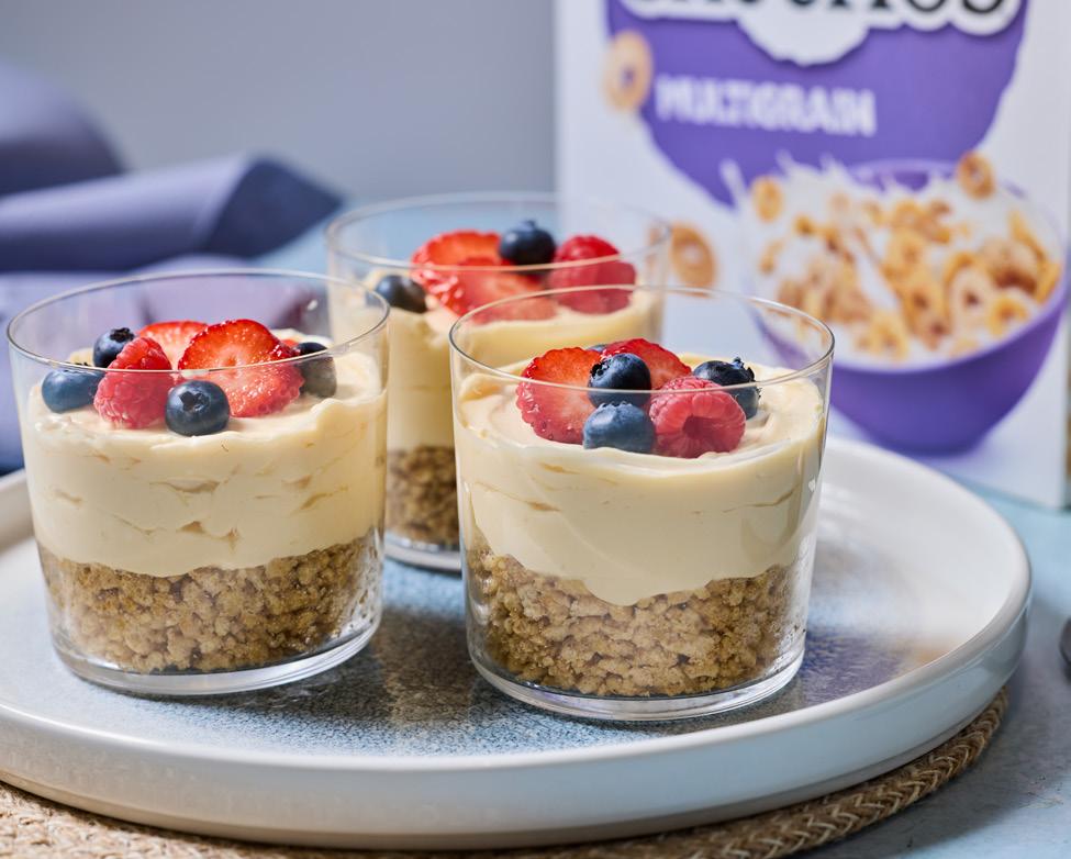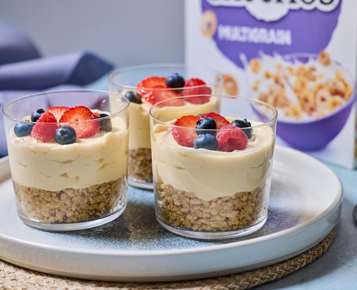 5. Pour the custard mix over the Cheerios base and chill for 30 minutes to 1 hour until the topping firms up slightly.