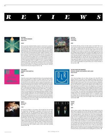 Outer Limits Recordings is the now defunct alter-ego of the often-AWOL Sam Mehran, formerly of Test Icicles. If you’re thinking the timing of this release is slightly odd, you’d probably be right, Outer Limits’ releases whilst still operational made little impact. But one play of this record and you’ll excuse an explanation. With stunningly psychedelic, lo-fi power-pop tracks like Liberty, Digital Girls and Julie, you can’t help but be sucked in by the delirious charm of Mehran’s hookheavy songwriting. It’s Ariel Pink on (more) acid, plunged into a vat of aqueous digital effects and launched into space. Indeed, song titles like Mind Control, I’m an Alien, and WOTM (Walking on the Moon) paint a suitably surreal picture to describe the workings at hand, while Sugar Pie is like a glittery, hallucinogenic introduction to TV’s Fun House. The second half of this (admittedly exhausting) compilation stumbles somewhat, as it loses much of the flamboyance of the first half, as well as falling victim to the unavoidably disjointed nature of a compilation, though the occasional ‘80s sci-fi instrumental partially makes up for this. But overall the richness of the music on show is more than enough to make us mourn this sadly expired project. JTB