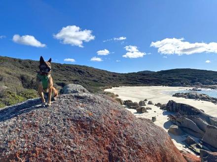 We recently had a special guest on Three Hummock Island, Kalinka the conservation dog. Kalinka is a highly trained expert at sniffing out signs of cats (and other feral species when required) Kalinka, accompanied by her handler, Dr Sue Robinson from Forest Hill Conservation Dogs, was there to check for signs of feral cats as part of our Creating a Hooded Plover Stronghold project She reportedno such signs from her explorations around the island, which amounted to 88km!