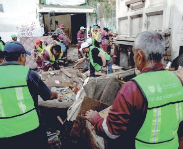 LIMPIEZA en la zona afectada el sábado por las fuertes lluvias en la Magdalena Contreras