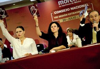 … Y APOYAN “FILTROS” PARA NUEVOS MILITANTES. Durante el Consejo Nacional de Morena, realizado ayer domingo, el presidente del órgano, Alfonso Durazo Montaño, llamó a cerrar filas: “Ante quienes presionan desde fuera y hacen causa común desde dentro, la respuesta debe ser firme, sin titubeos, unidad total del movimiento con la presidenta Claudia Sheinbaum”. Por su parte, Luisa María Alcalde, presidenta nacional, señaló como temas clave la consolidación de su movimiento a nivel municipal e instaurar filtros para los nuevos miembros del partido. Pág. 4