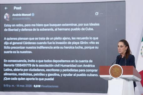 de las tiendas militares del régimen. Los productos como arroz, frijol, alimentos enlatados, papel higiénico, artículos de limpieza, entre otros, no llegaron a pueblo hambriento, no sólo de pan, sino de justicia. Por ello, la presidenta Sheinbaum Pardo salió a corregir la plana a la dictadura cubana y desmintió la versión de la empresa de Salinas Pliego. El sábado pasado, el expresidente López dijo que la suerte de Cuba es la nuestra. Para ello exhortó, desde su escondite en el sureste mexicano, a hacer donativos a una cuenta de Banorte a nombre de la asociación civil “Humanidad con América Latina”. La noche oscura de la dictadura cubana ya empezó.