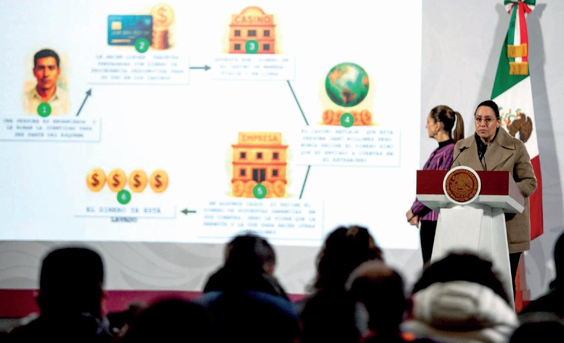 NO ES NADA POLÍTICO CONTRA SALINAS PLIEGO: SHEINBAUM. Tras detectar transferencias millonarias irregulares al extranjero y paraísos fiscales, el gobierno bloqueó la operación y cuentas asociadas a 13 casinos que presuntamente lavaban dinero, dos de ellos propiedad de Ricardo Salinas Pliego, contra los que se interpondrán denuncias ante la FGR, confirmó ayer la presidenta Claudia Sheinbaum, y puntualizó que este tema, como el de adeudo de impuestos, es un asunto jurídico, no político, como insiste el empresario en hacerlo creer Foto: Cuartoscuro. Pág. 11