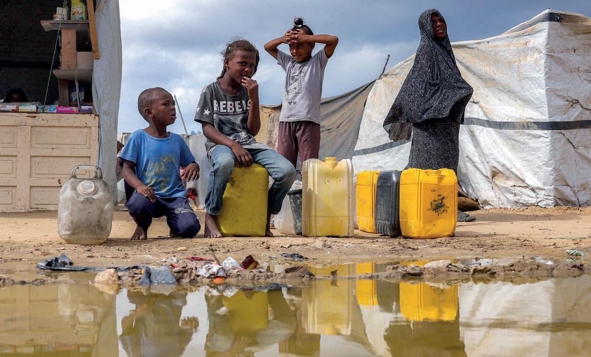 MÉXICO RECIBE “AUTORIZACIÓN” DE TEL AVIV: SRE. Luego de informar ayer que los seis mexicanos encarcelados por Israel se encuentran bien de salud, la presidenta Claudia Sheinbaum aseguró que serán repatriados esta semana, tras ser aprehendidos en aguas internacionales por la Marina israelí al intentar romper el cerco de hambruna que sufren los diezmados palestinos. En la imagen, menores gazatíes con bidones en busca de abastecerse de agua, en el sur de la Franja de Gaza. Pág. 5