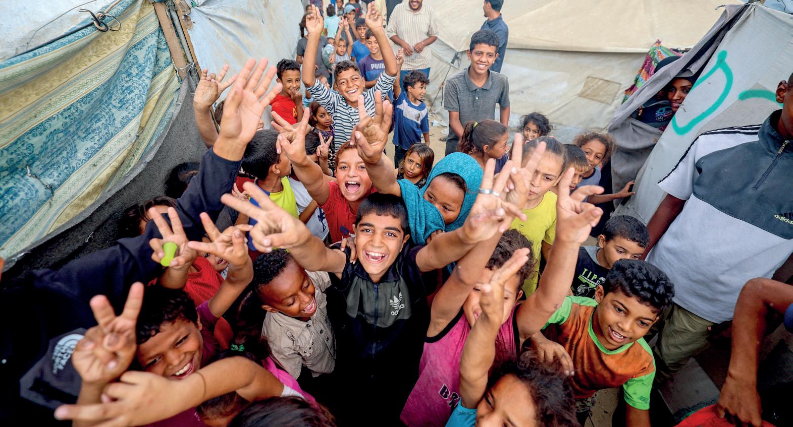 TRUMP VE “PAZ DURADERA”. Ayer, el gobierno israelí aprobó el cese inmediato al fuego en la Franja de Gaza, como parte del Acuerdo de Paz puesto en la mesa de negociaciones en coordinación con Estados Unidos. Su contraparte, Hamas, también dio su aval al afirmar que ofrecieron garantías de que la guerra ha terminado. Y el mandatario estadounidense, Donald Trump, señaló que avizora una “paz duradera” en la región y aseguró que sus esfuerzos por lograr un acuerdo no tenían como objetivo ser galardonado con el Premio Nobel de Paz, a horas de ser anunciado, sino actuó por el bien de la humanidad. En la imagen, niños palestinos celebran la noticia en un campo de refugiados en la Franja de Gaza. Foto: AFP. Pág. 13