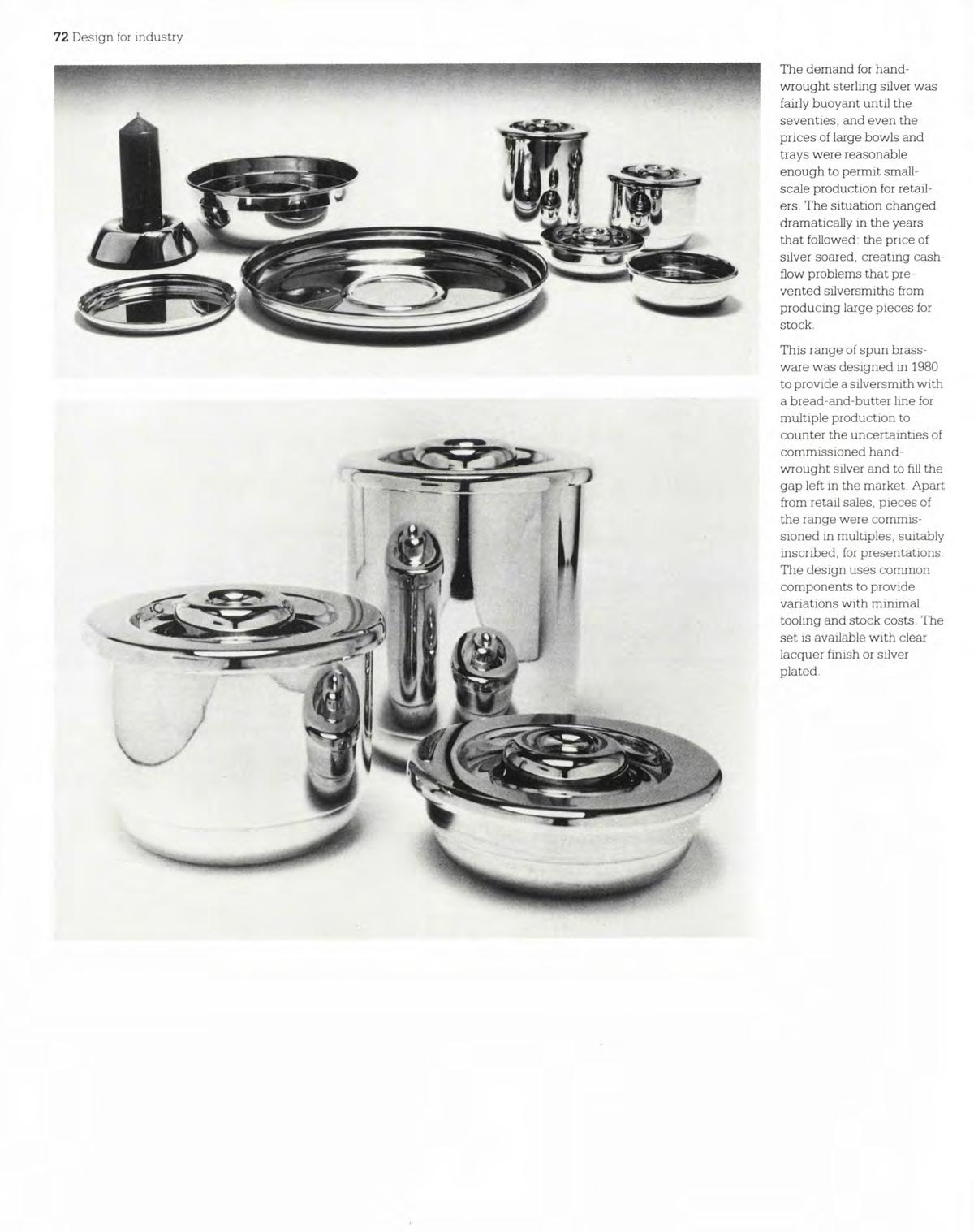 However, there are other factors at work: In the late 1970s/early 1980s there was a growing awareness of the need for industrial design education in Ireland in response to the growth of industry and the encouragement of KDW, although the field was still relatively nascent. In 1984 a Degree course in Industrial Design has been validated at the National College of Art and Design (NCAD). This is likely to significantly boost the future design profession in Ireland and help to enable the transition from state design intervention to