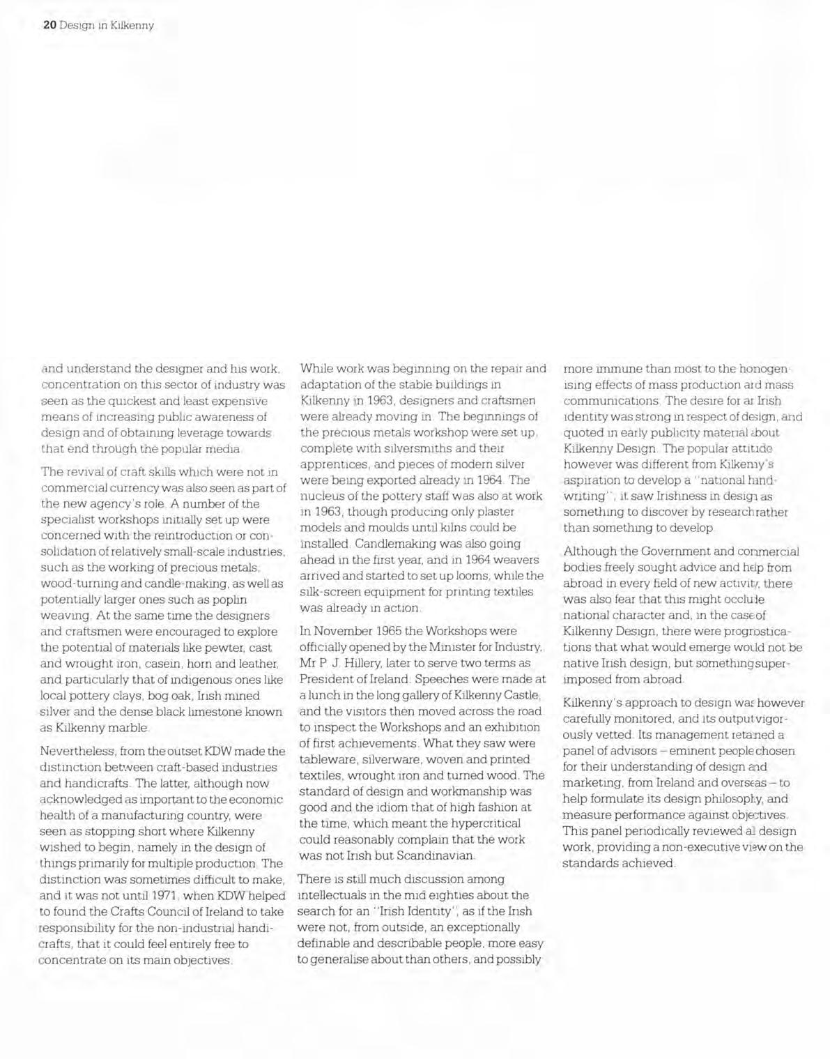 its parts. Whatever the outcome, Kilkenny Design Workshops is likely to remain world renowned as an unique initiative in kick starting design in a developing economy.