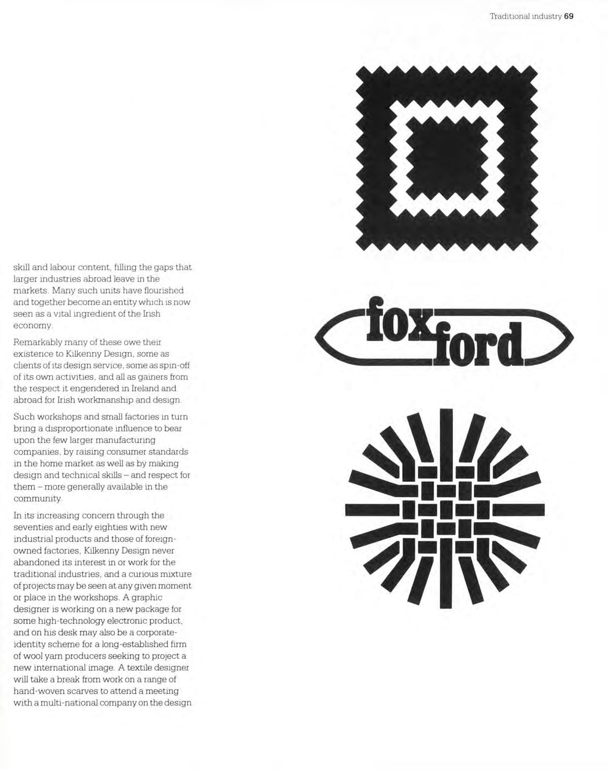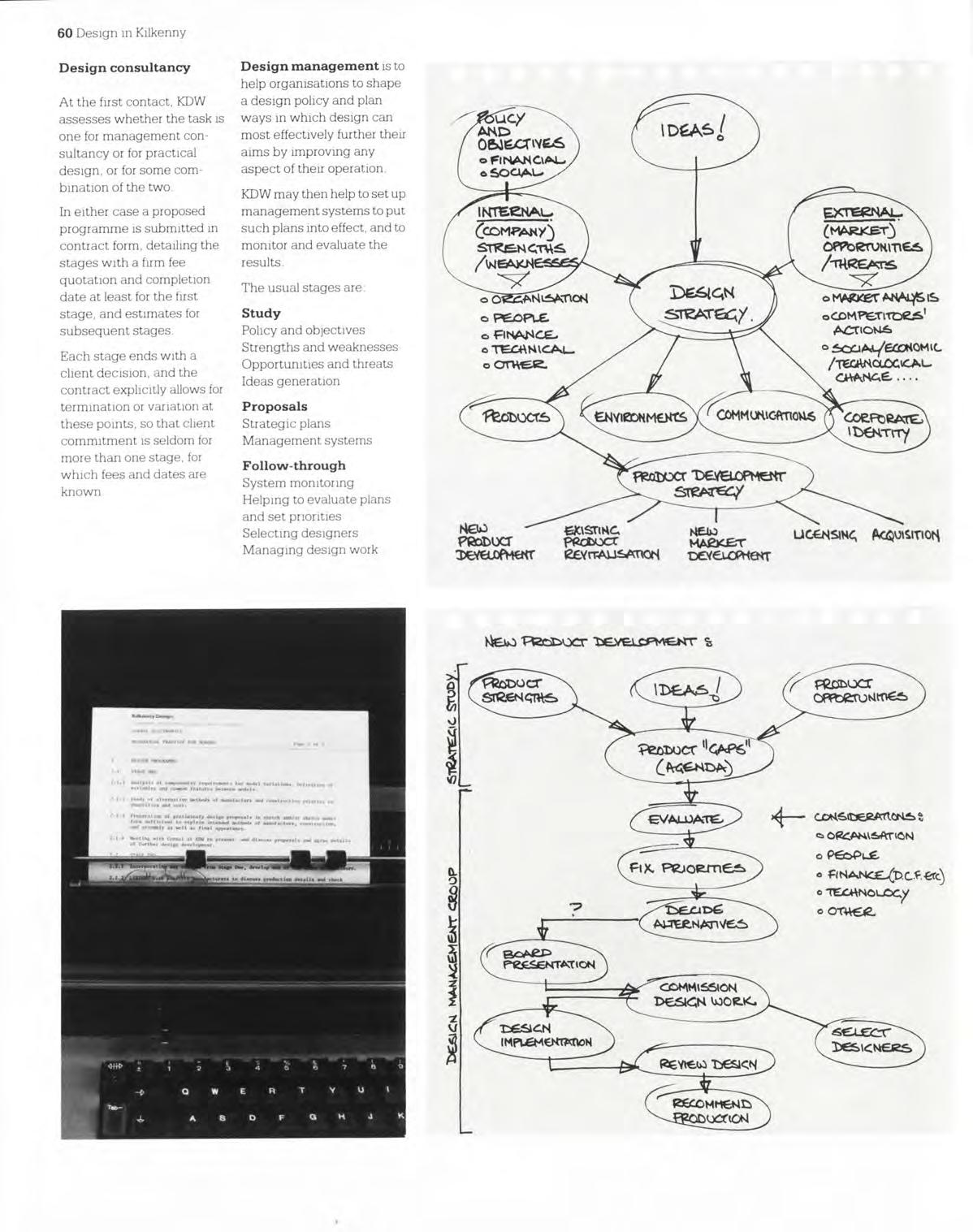 In other countries the function of design promotion agencies is perhaps, by instigation and encouragement, to make themselves unnecessary. In Ireland, the relative smallness of industrial units makes it less possible for each to afford its own design and product development resources and it is clear from KDW's own rapid change and development and from the reliance of its clients on help not just in design but in ancillary fields, that there will be a steadily growing need for design resources in Ireland in the future.