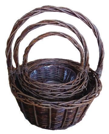 S/3 Willow Oval Decorative Baskets w/ Handles & Liners