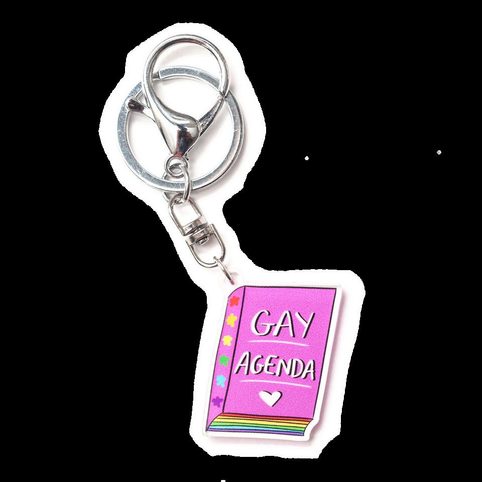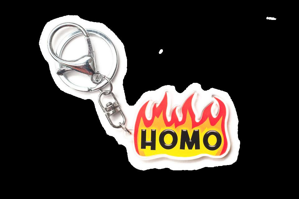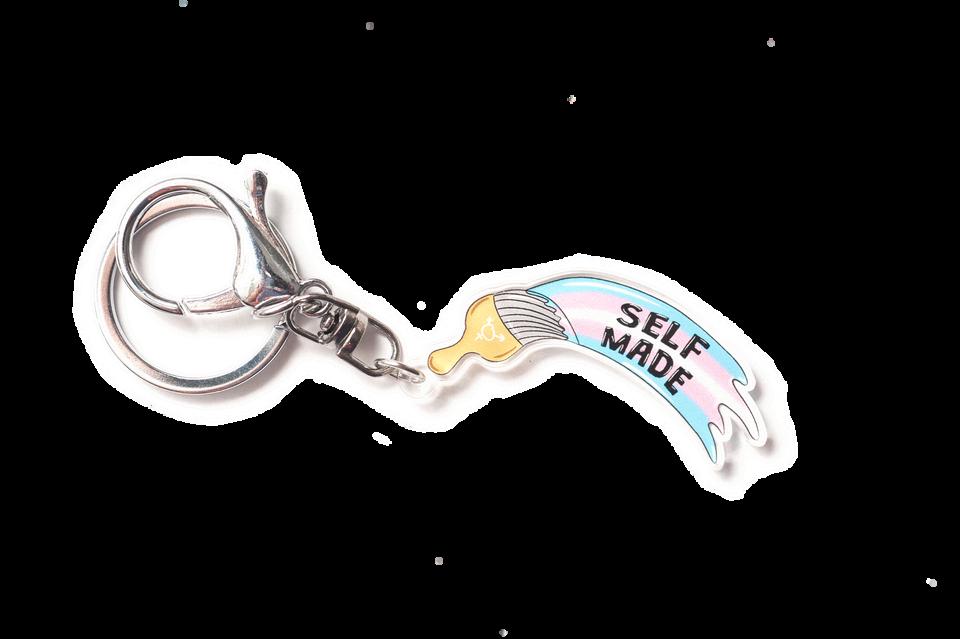 Acrylic, with both a lobster clasp hook & standard keychain ring. Design is only printed on one side.