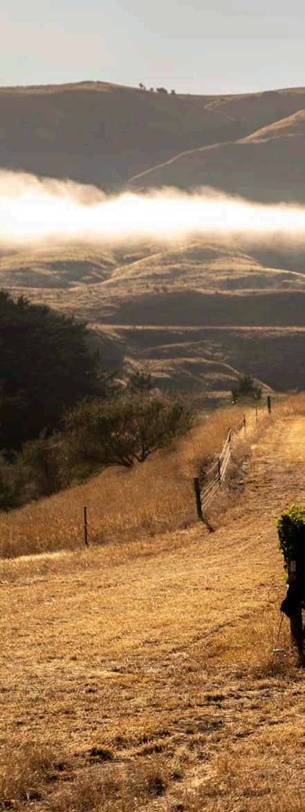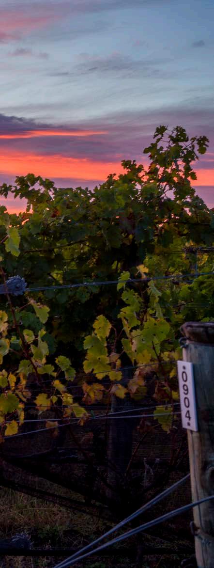 The soils are composed of small to mediumsized greywacke stones, interspersed with layers of silt and sand down to a depth of at least 40 metres. The stones on the surface absorb sunlight and heat during the day and radiate heat at night, enhancing the vine’s ripening capacity. The stony soil structure allows for very rapid drainage after rainfall events; the low water-holding ability enables us to control vine growth.