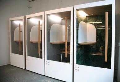 PRODUCT MIX The company’s phone booths, meeting rooms, open rooms and focus rooms are all prefabricated, designed with in-of ce needs, from privacy to collaboration, in mind.