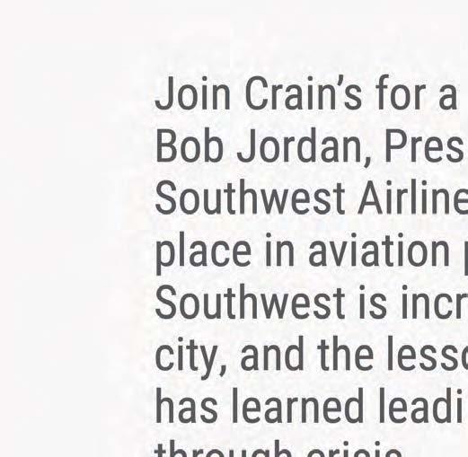 Vol. 46, No. 30 Crain’s Chicago Business (ISSN 0149-6956) is published weekly, except for the rst week of July and the last week of December, at 130 E. Randolph St., Suite 3200, Chicago, IL 60601-6201. Periodicals postage paid at Chicago, Ill. © Entire contents copyright 2023 by Crain Communications Inc. All rights reserved. Reproduction or use of editorial content in any manner without permission is prohibited.