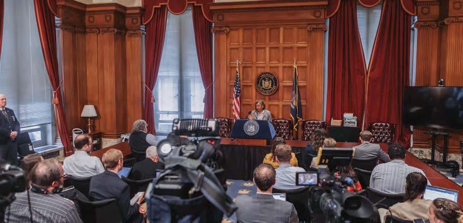 housing deal, which fell into place thanks partly to Hochul’s concessions on tenant protections. On the other hand, the $4 billion growth in spending compared to Hochul’s initial budget plan re ects the Legislature’s success in rejecting some of her proposed cost-saving measures on Medicaid and public school funding.