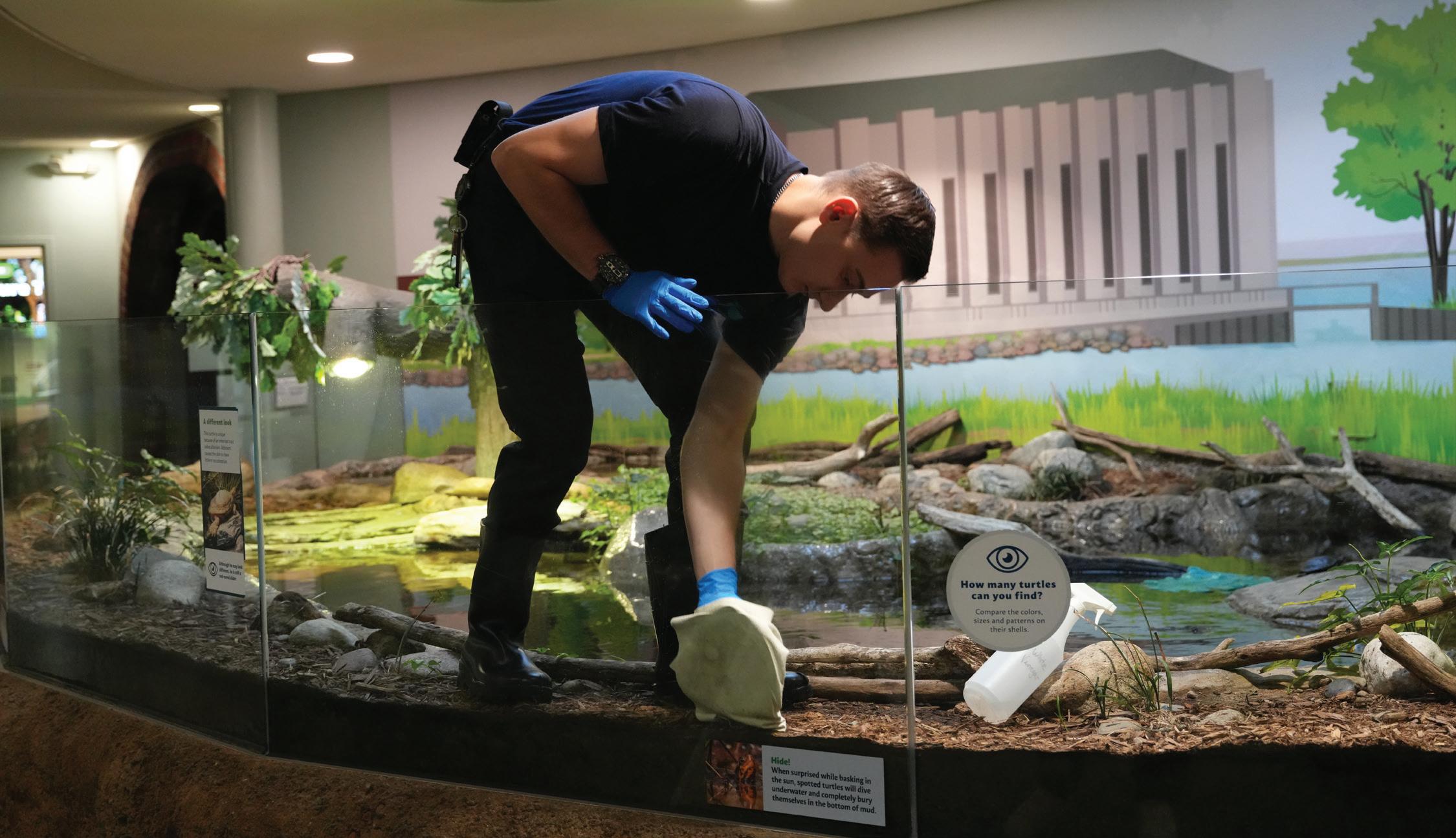 Their days are spent caring for the animals who call the Nature Center home — Michigan-native species such as turtles, snakes, frogs and toads. From cleaning habitats and monitoring health to making sure each animal has exactly what they need to thrive, their work is hands-on, detailed and full of heart.